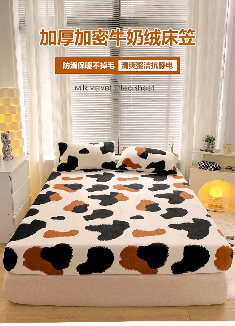 商品名称:捌月 2024冬季新款印花牛奶绒-床笠 泡芙