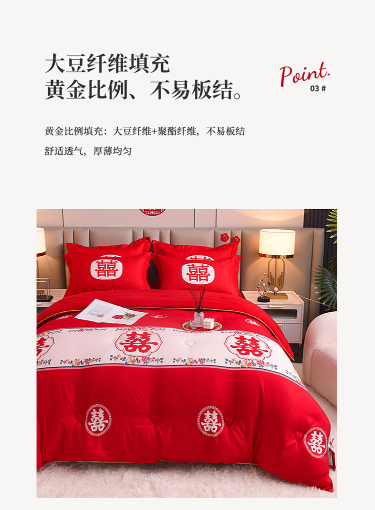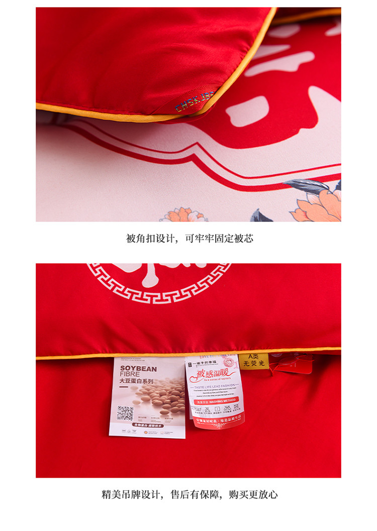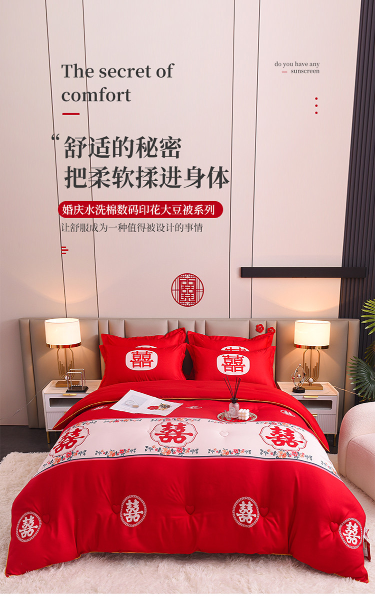 金麦2022新款数码印花水洗棉婚庆被大红喜被 佳偶天成