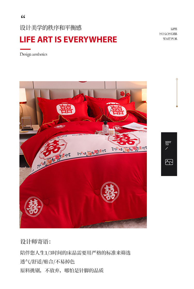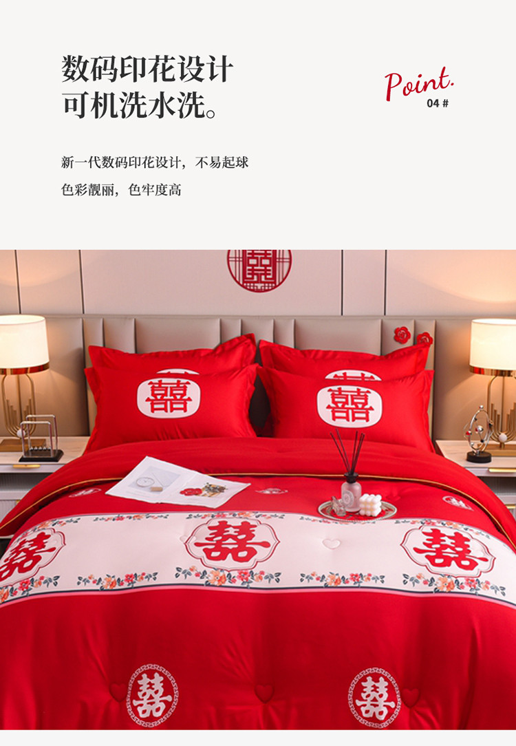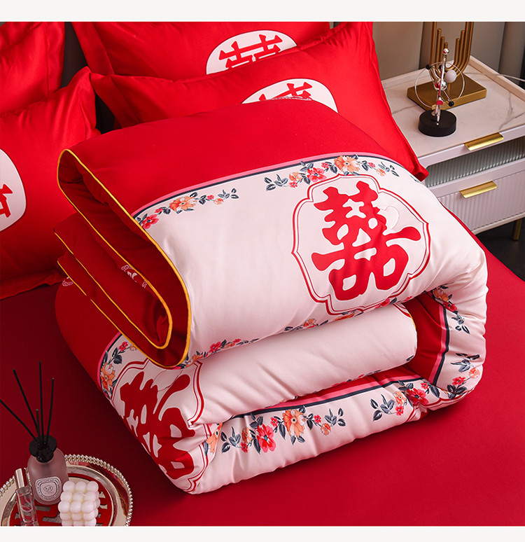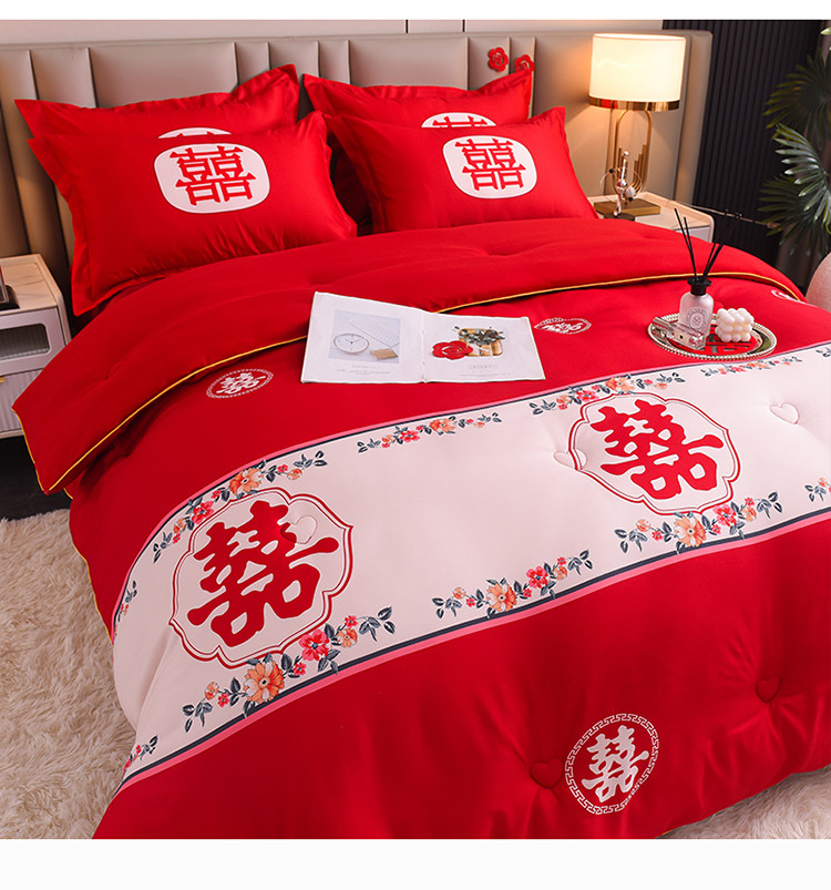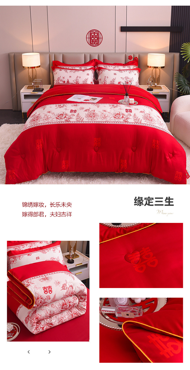 • 91家纺网 家纺一手货源 找家纺 金麦2022新款数码印花水洗棉婚庆被大红喜被 佳偶天成