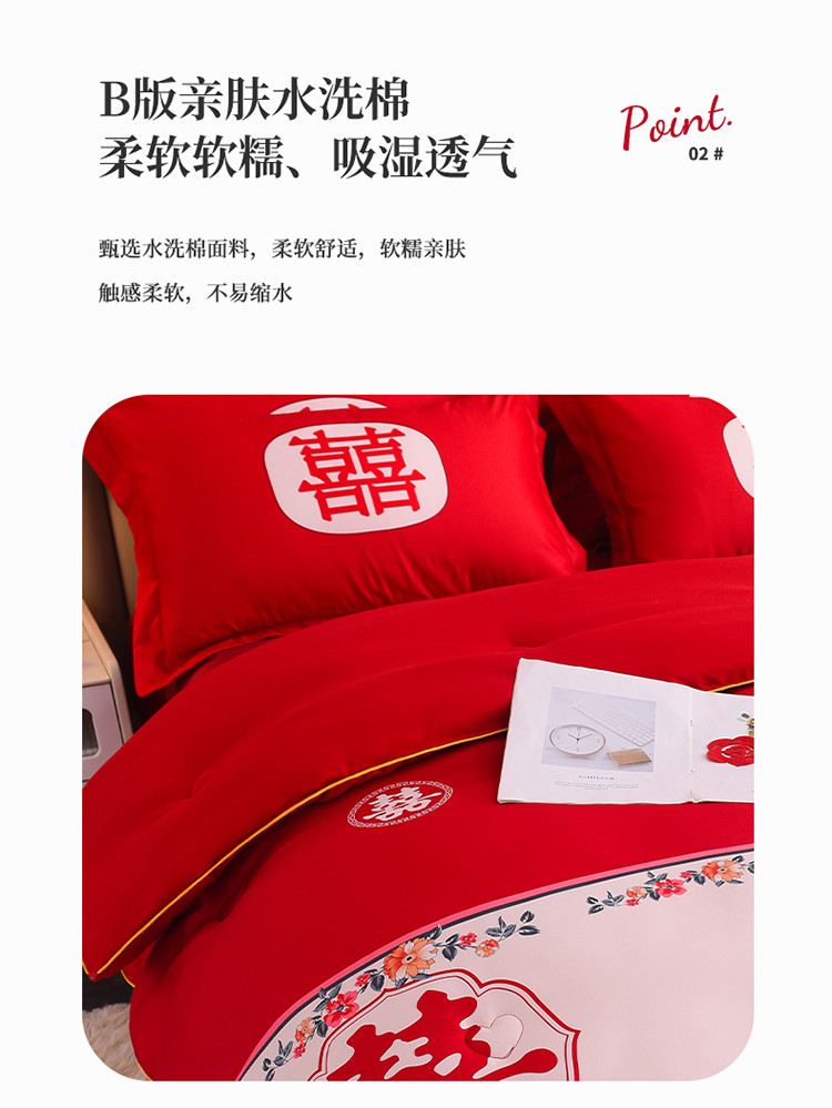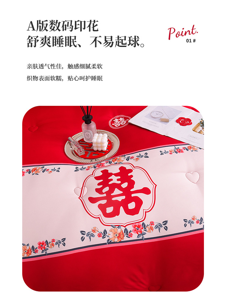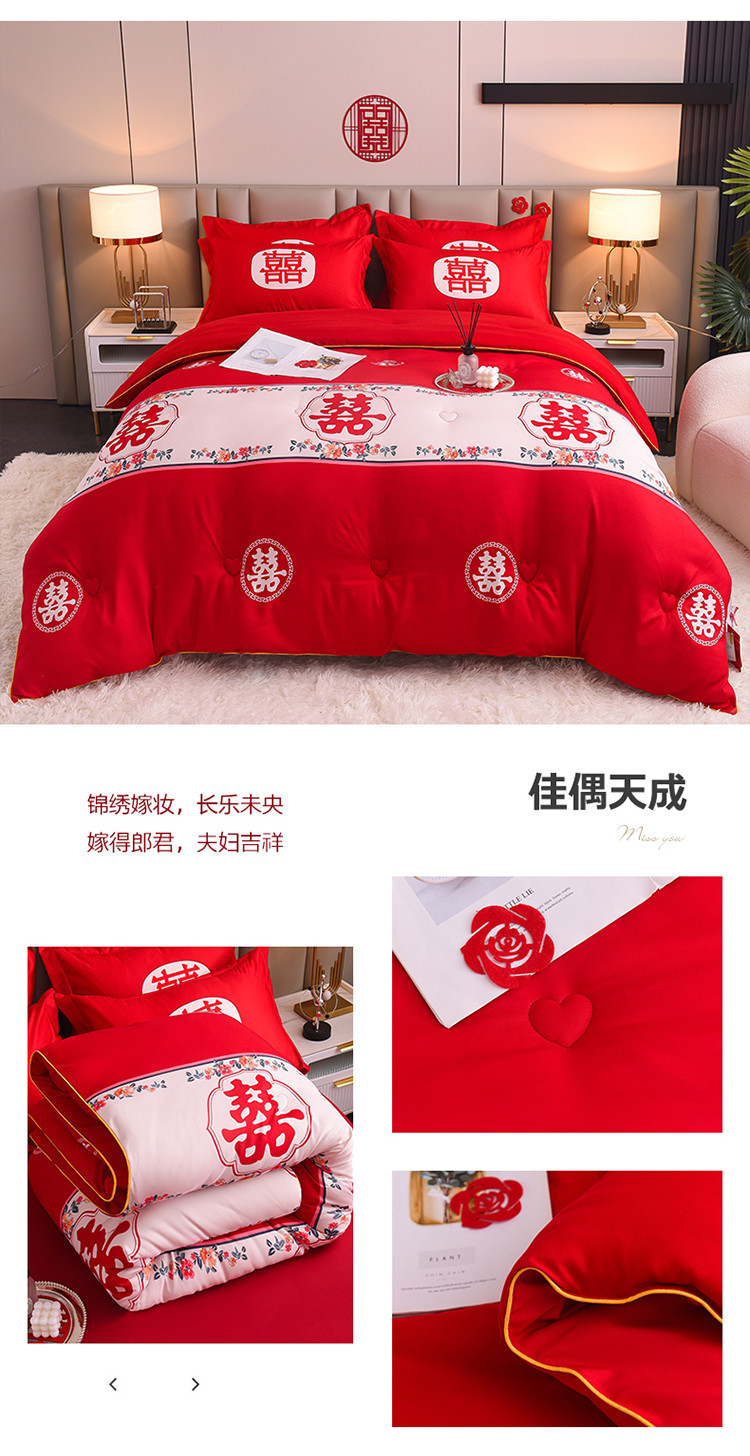 (总)金麦家纺 2025新款亲肤磨毛刺绣婚庆四件套,大喜,喜结良缘,喜愿,吾家有喜,喜爱,玫瑰有约