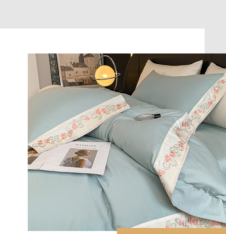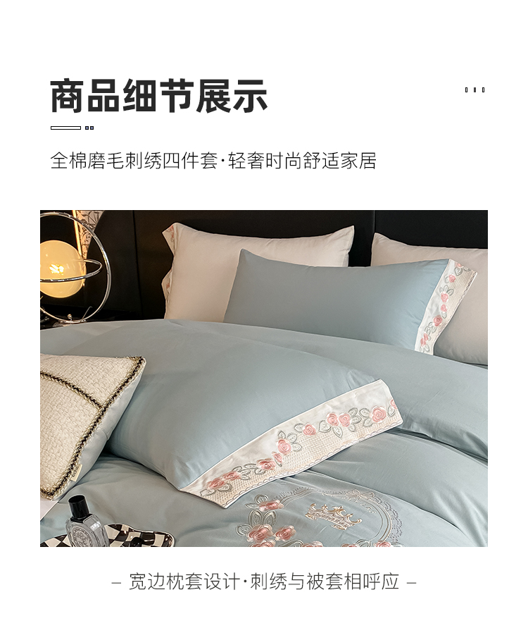 (总)理想家家纺 2025新款纯棉轻奢刺绣四件套-小秘密系列场景二,小秘密 粉,小秘密 黄,小秘密 蓝