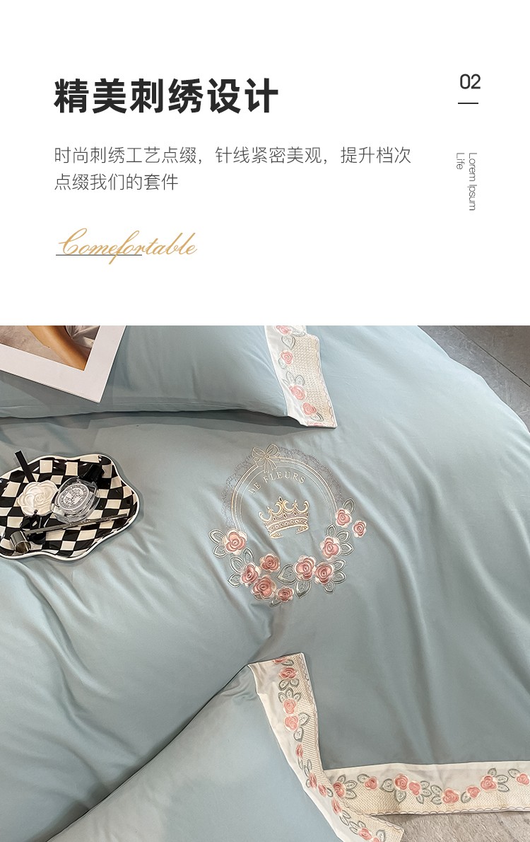 (总)理想家家纺 2025新款纯棉轻奢刺绣四件套-小秘密系列,小秘密-白,小秘密-粉,小秘密-蓝