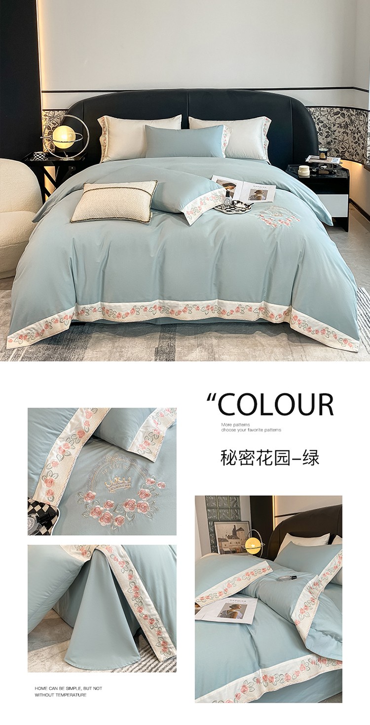 理想家 2022新款全棉磨毛绣花四件套-秘密花园 绿