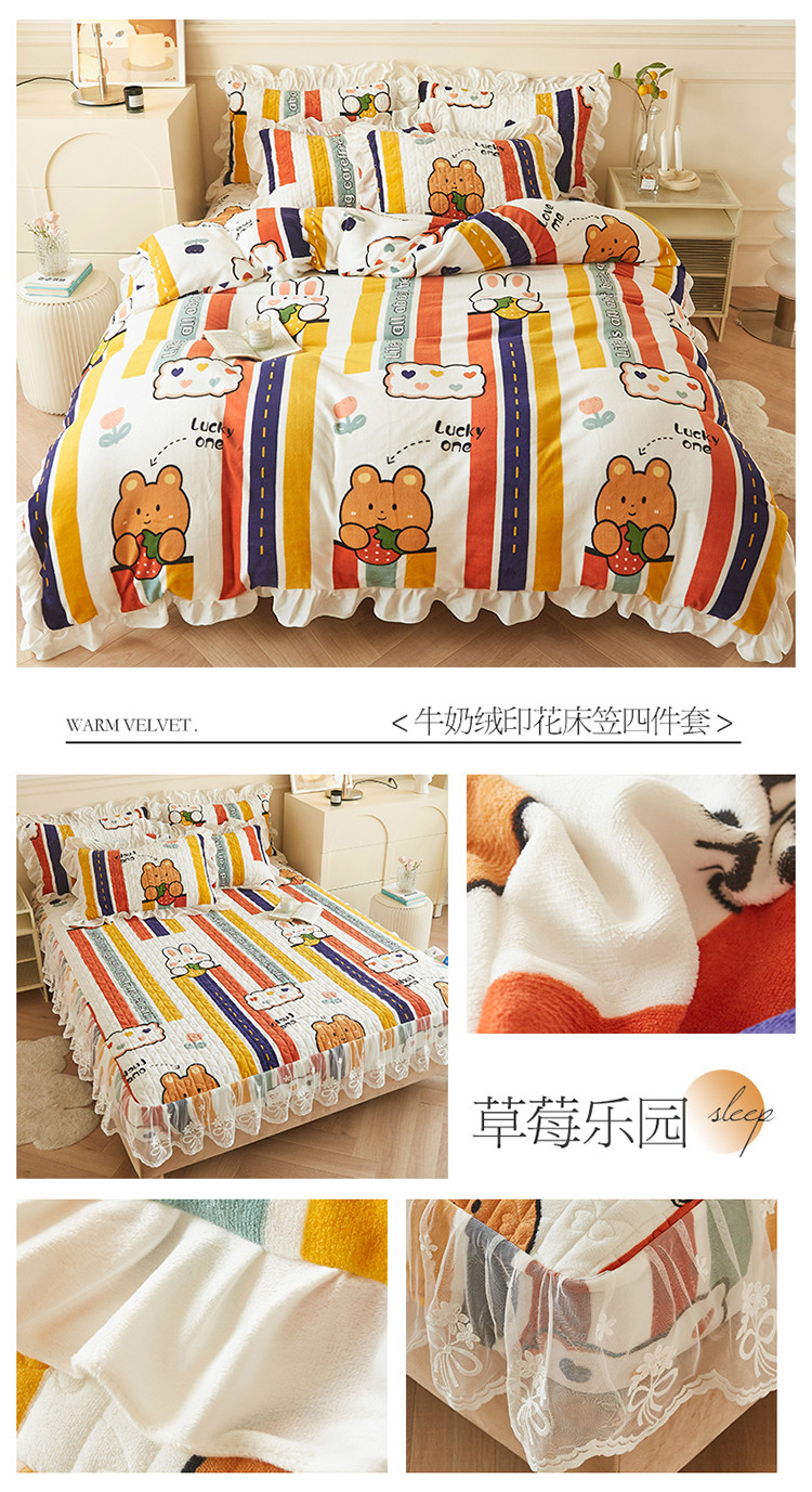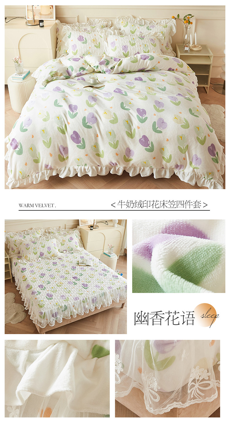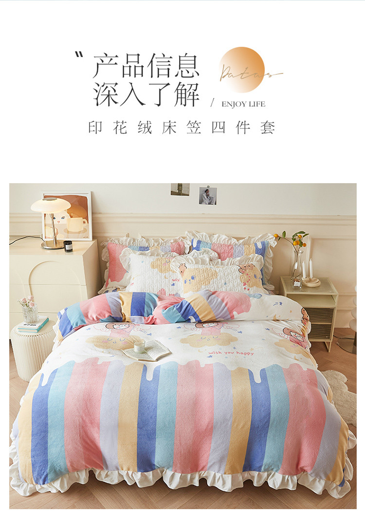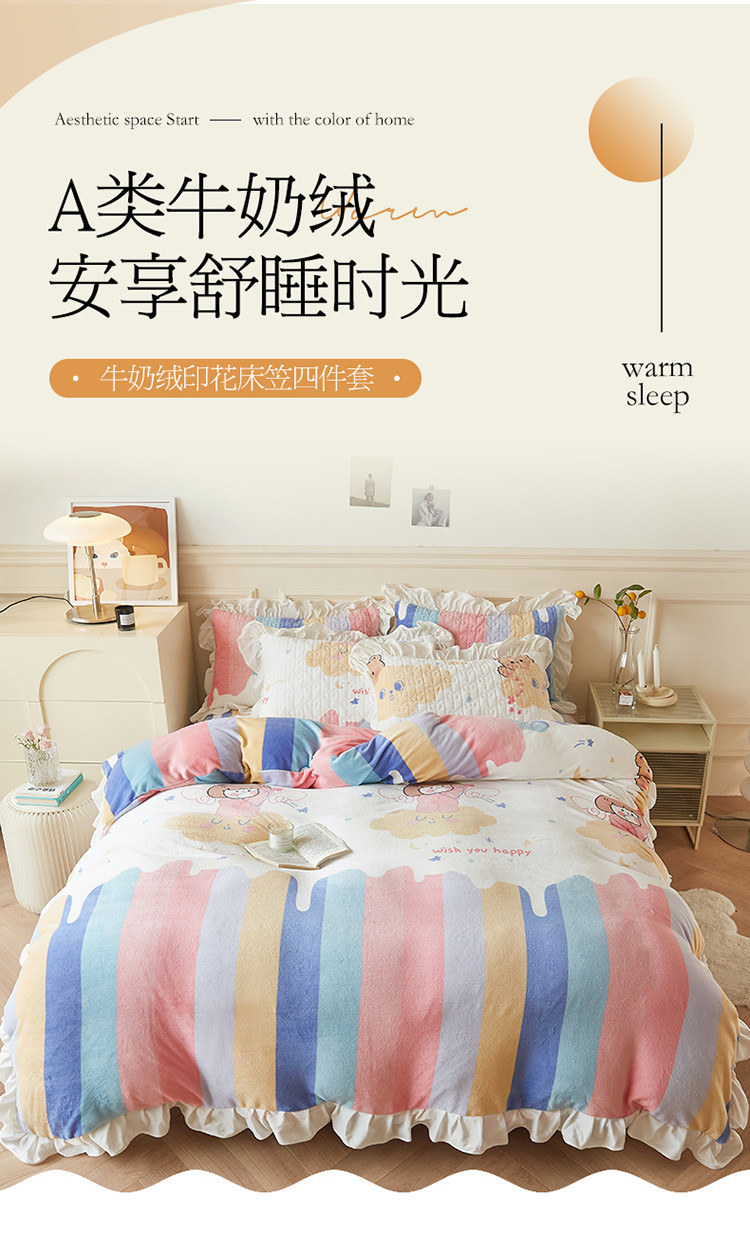 (总)宜凡 2022新款牛奶绒A类印花床笠四件套