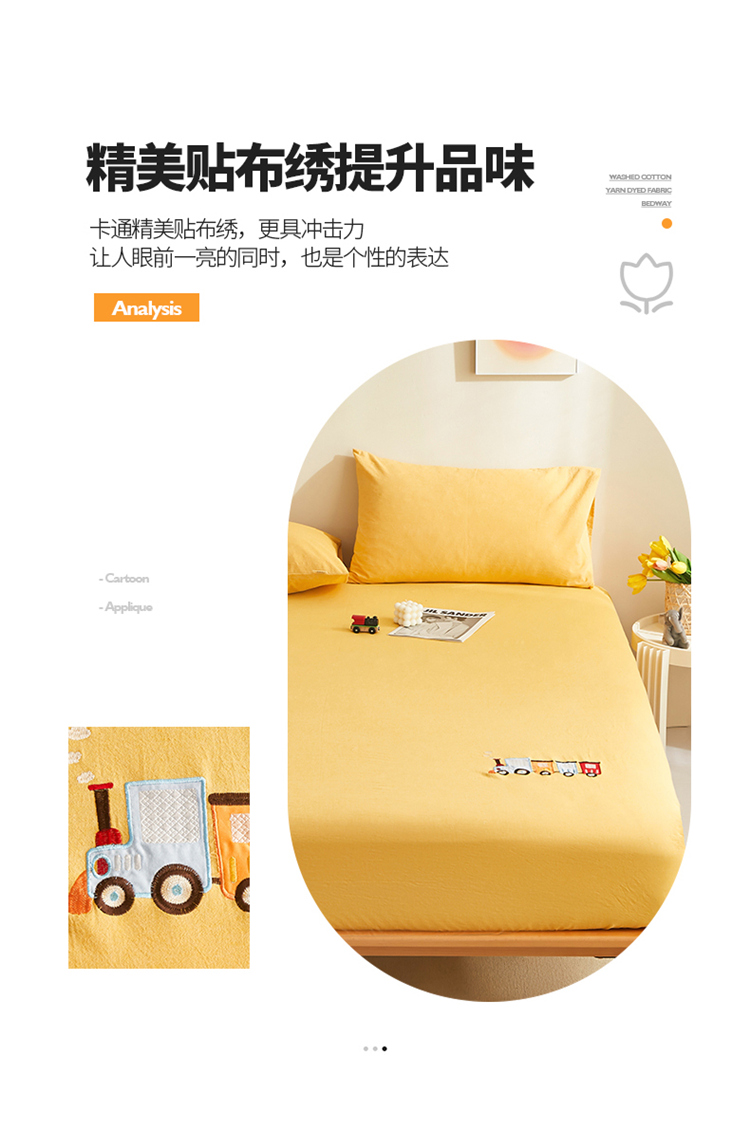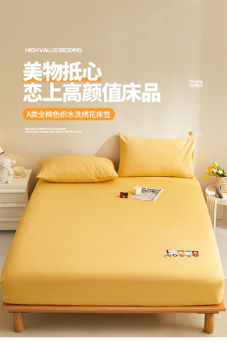 荷马之梦 2022新款全棉色织水洗棉绣花床笠-童梦系列小火车