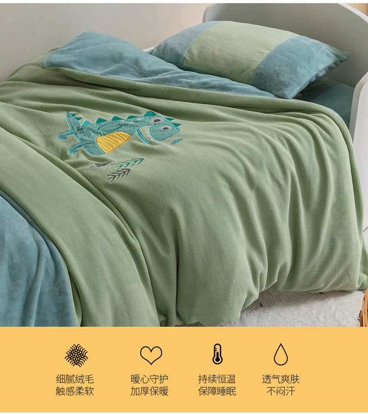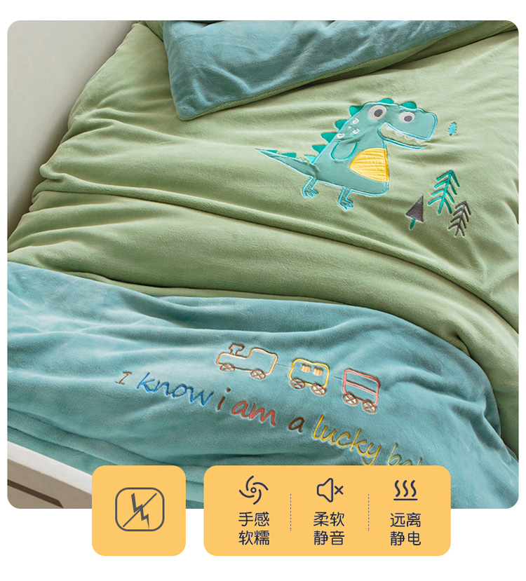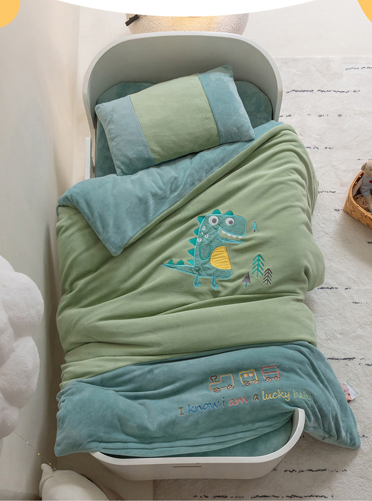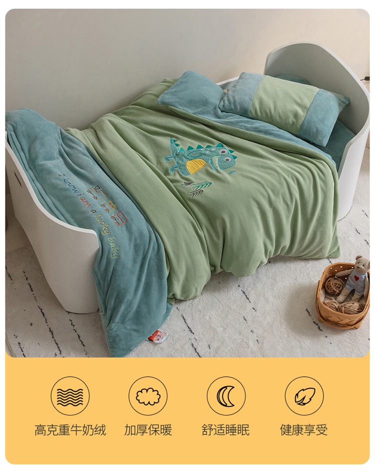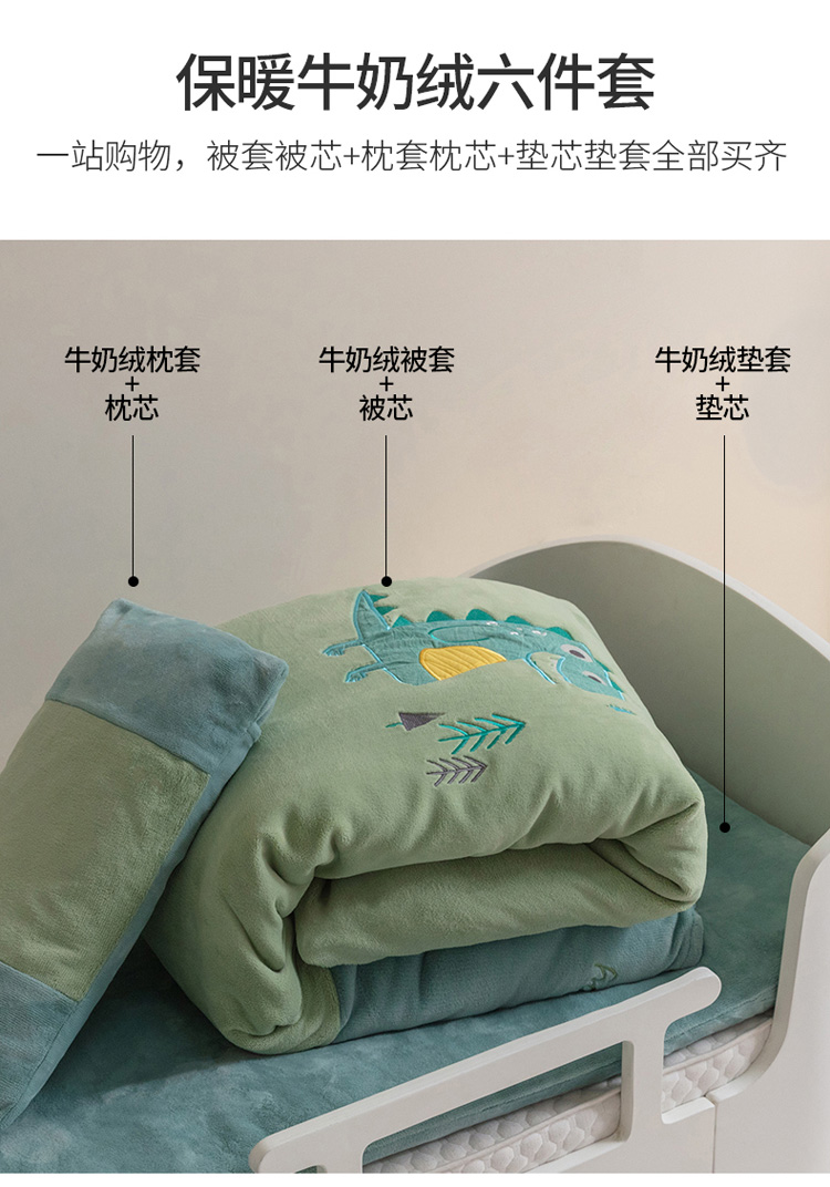 商品名称:喜多兔 2022新款全消光牛奶绒幼儿园三件套-小伙伴 绿色搞怪小恐龙