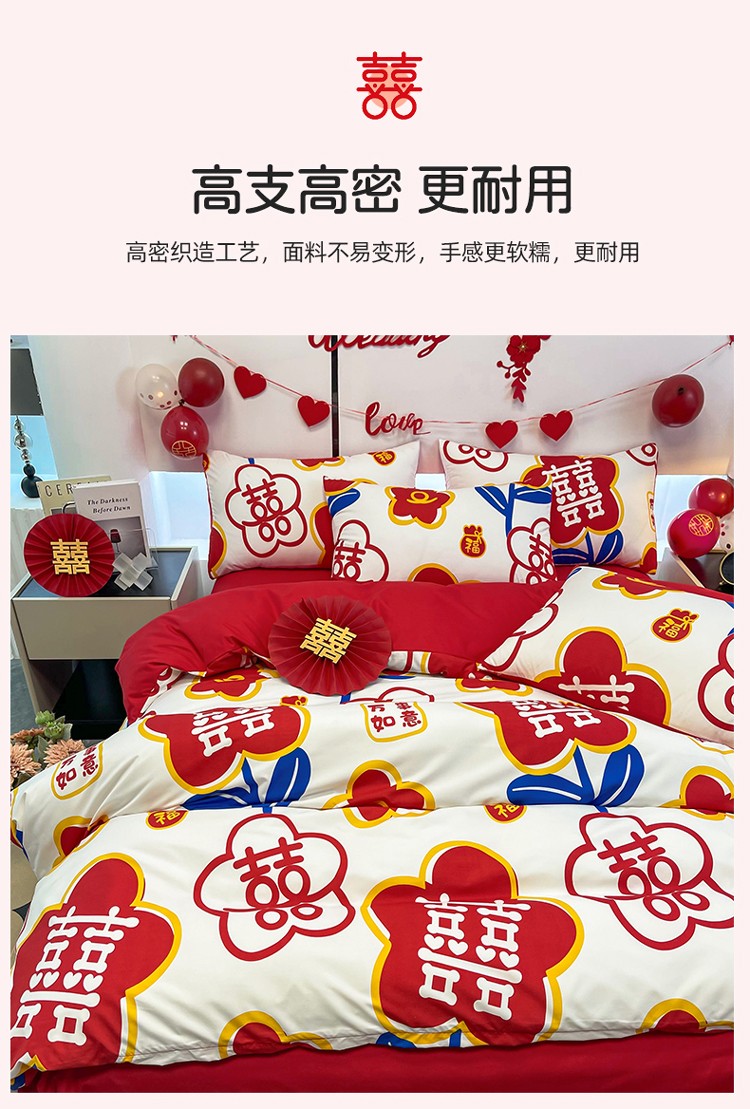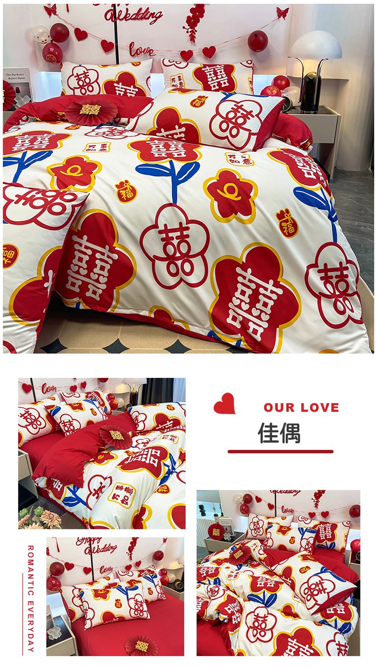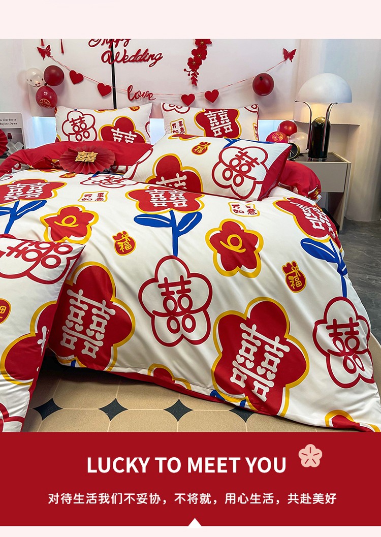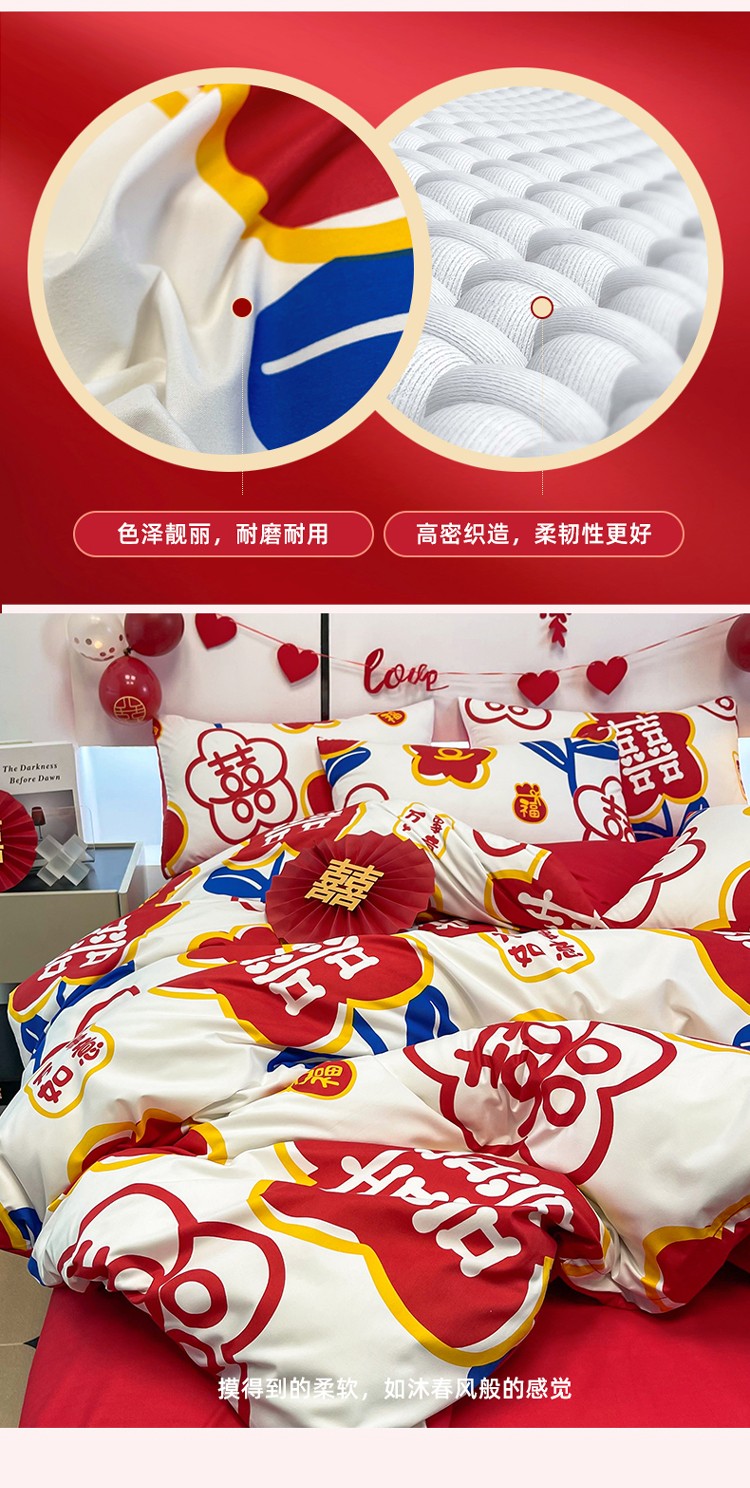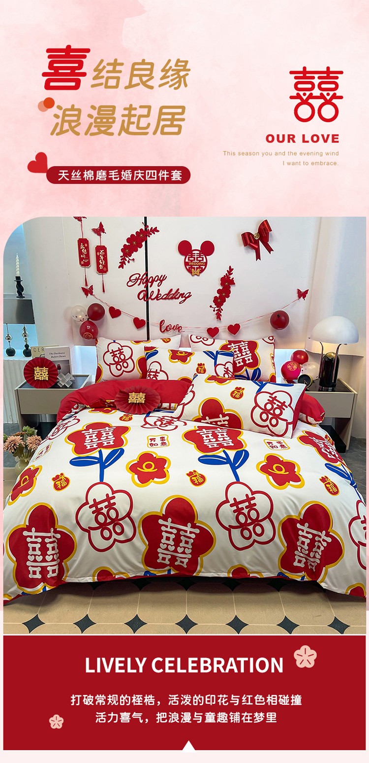 宏源 2022年新款大红时尚磨毛婚庆四件套 佳偶