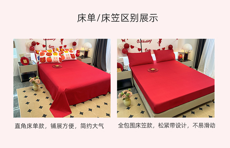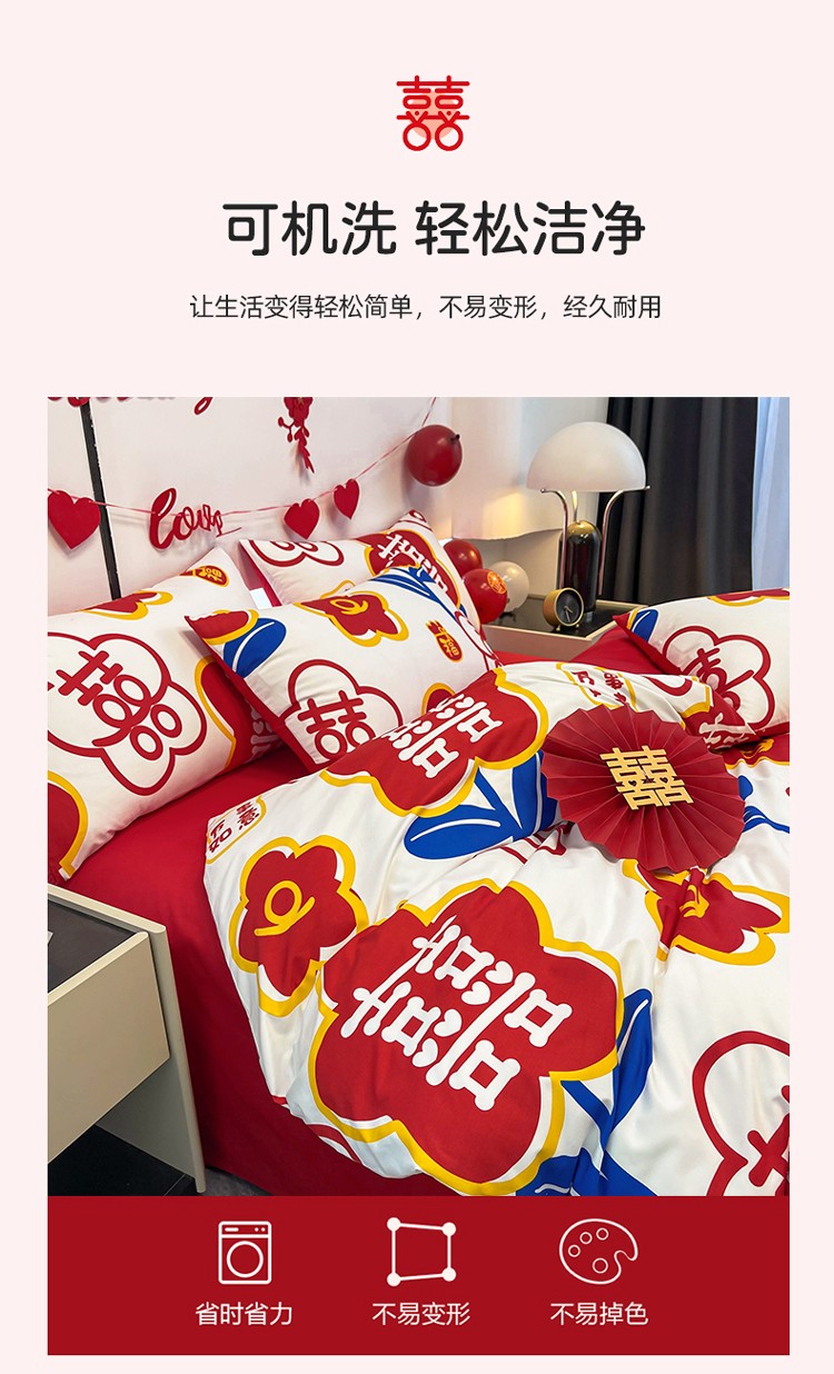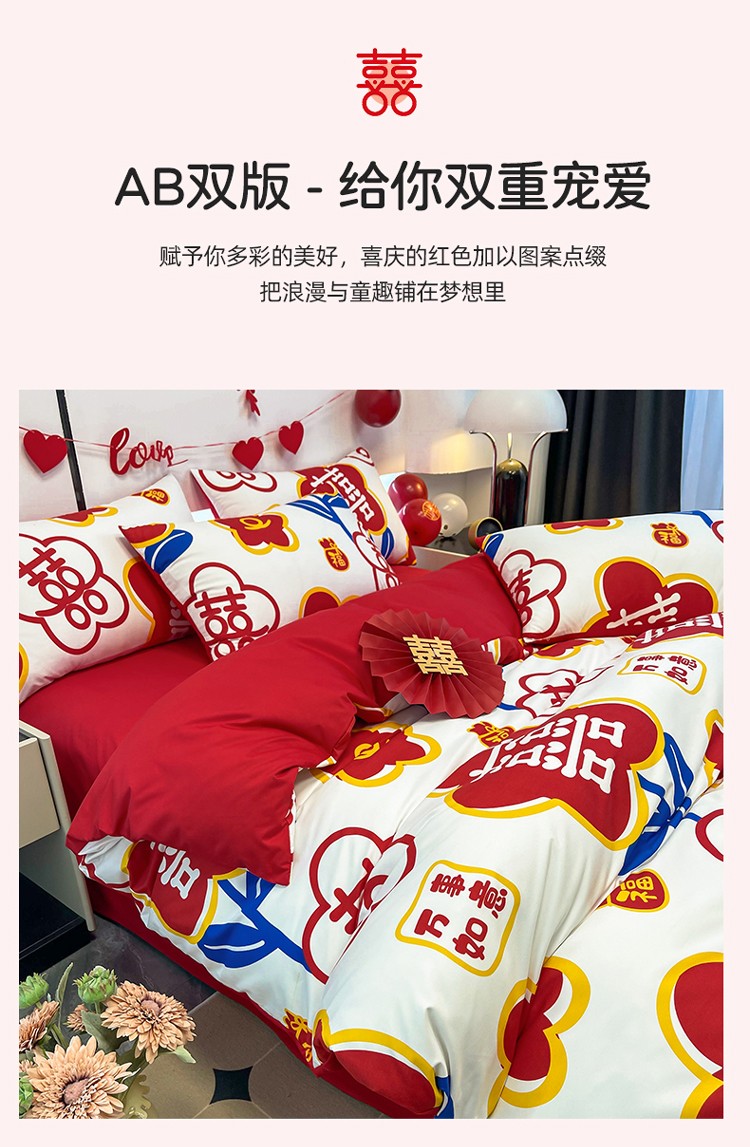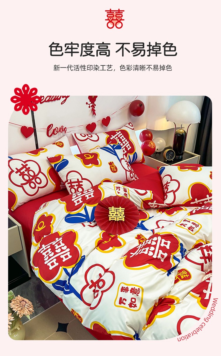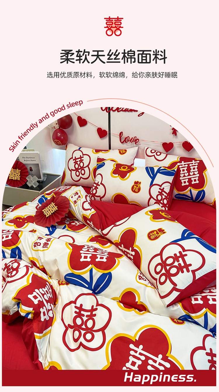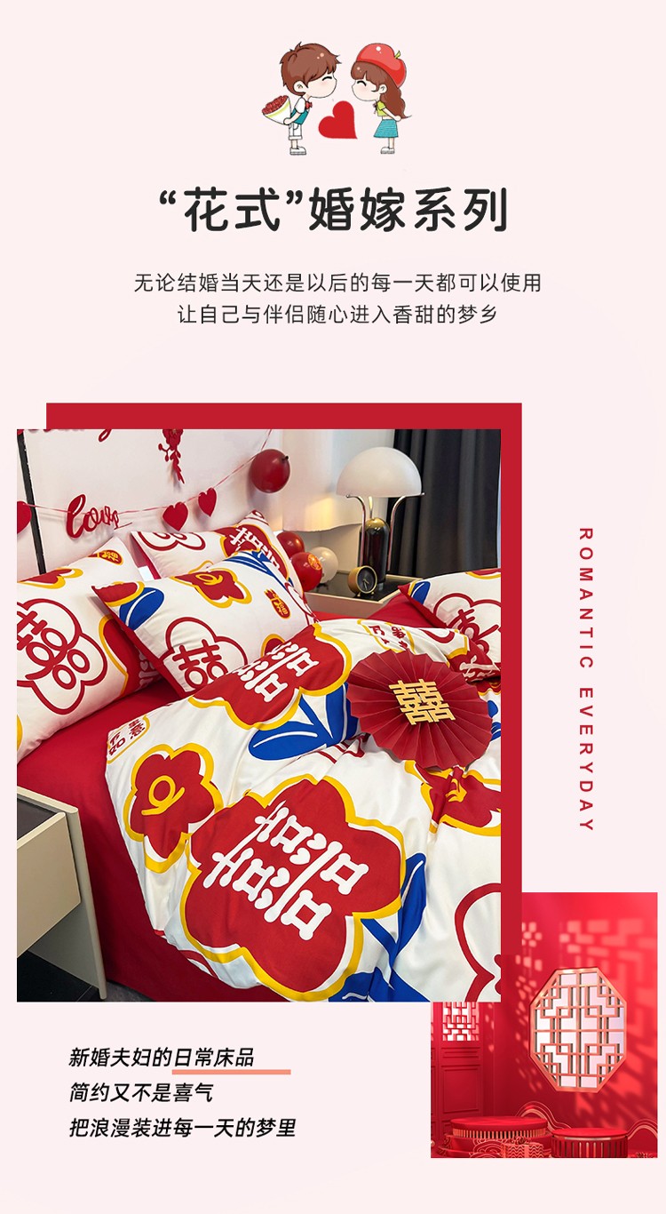 宏源 2022年新款大红时尚磨毛婚庆四件套 佳偶