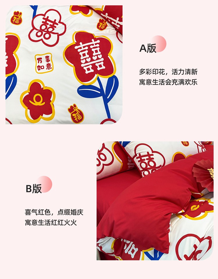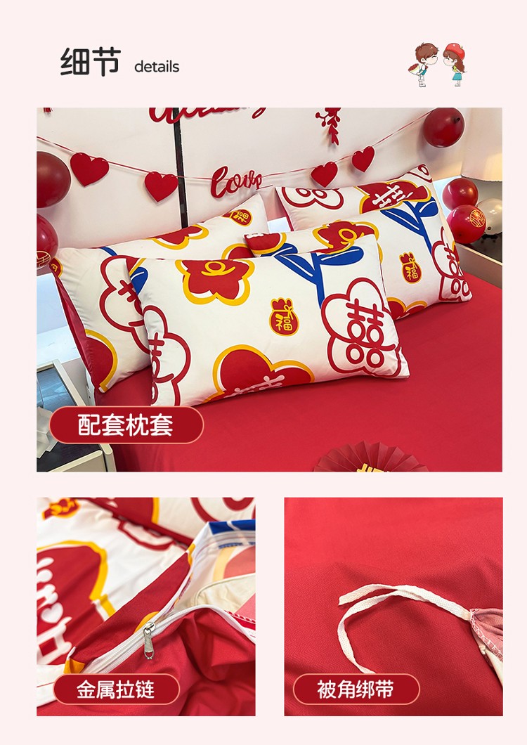 商品名称:宏源 2022年新款大红时尚磨毛婚庆四件套 佳偶