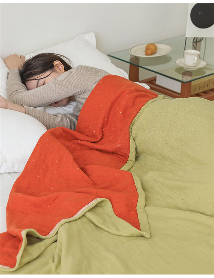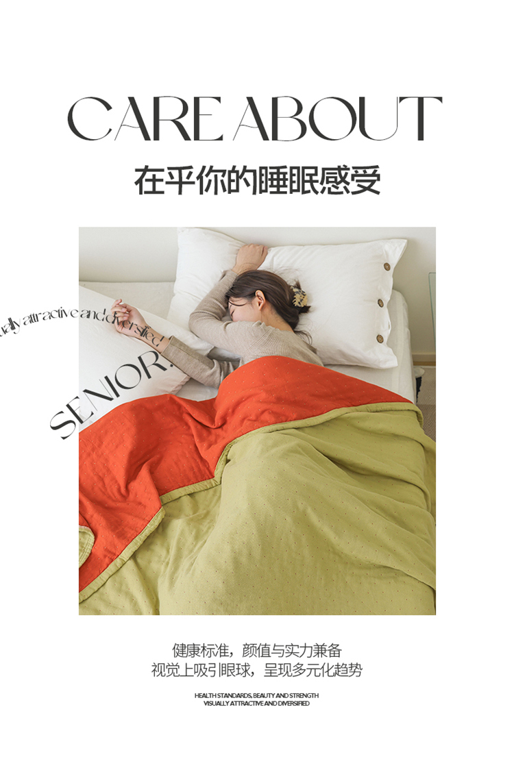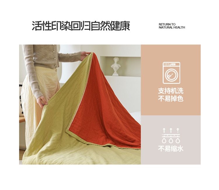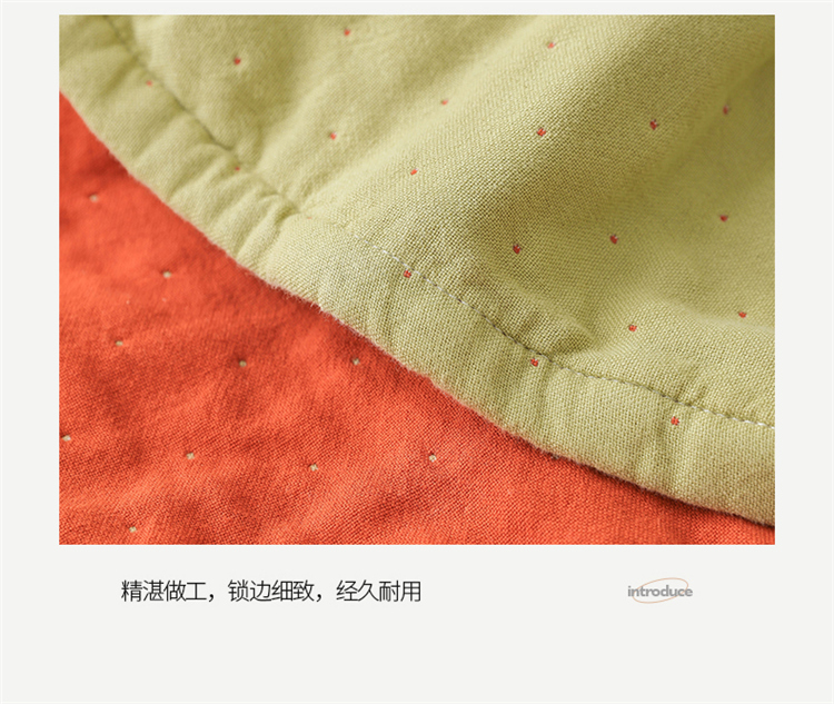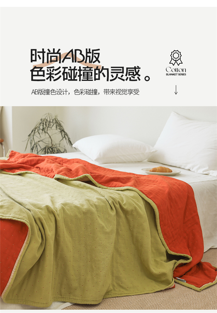 雯雨家纺 2023新款全棉拼色纱布毛巾被 刺绣-绿