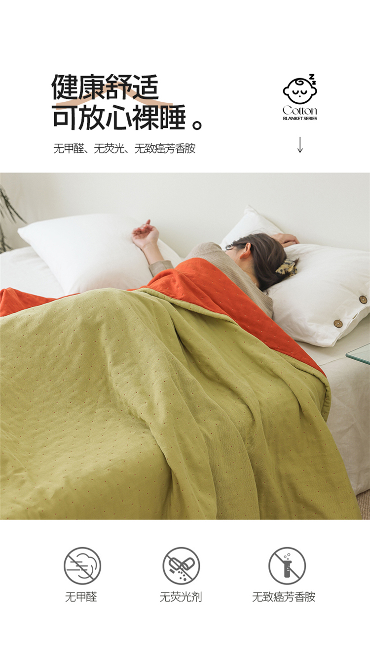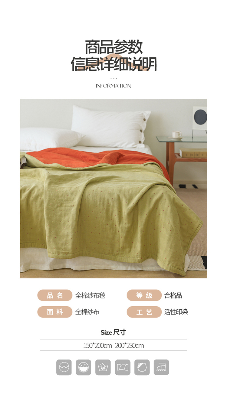 商品名称:雯雨家纺 2023新款全棉拼色纱布毛巾被 刺绣-绿