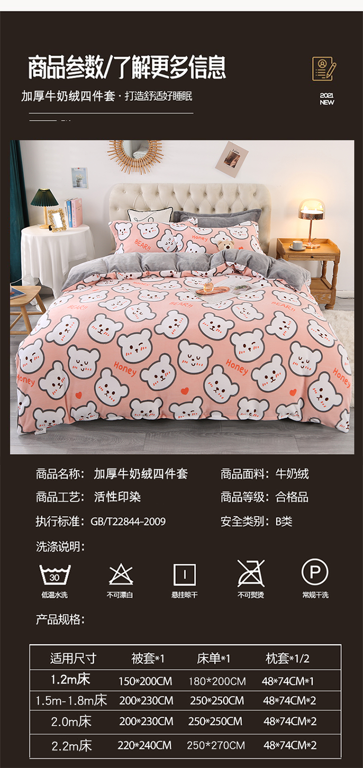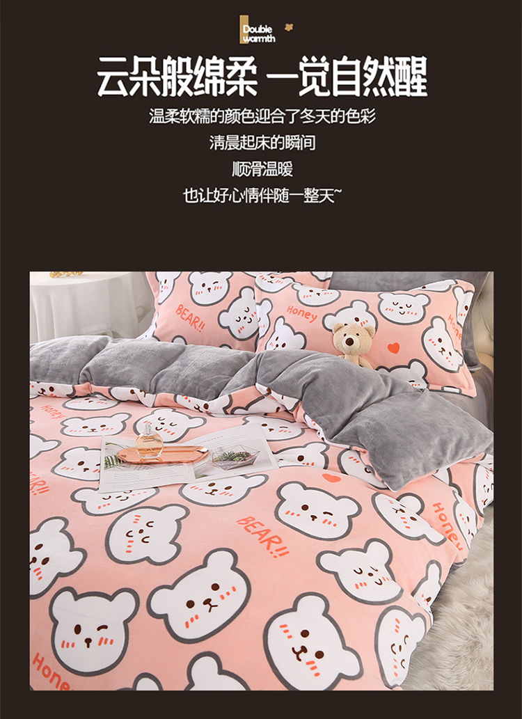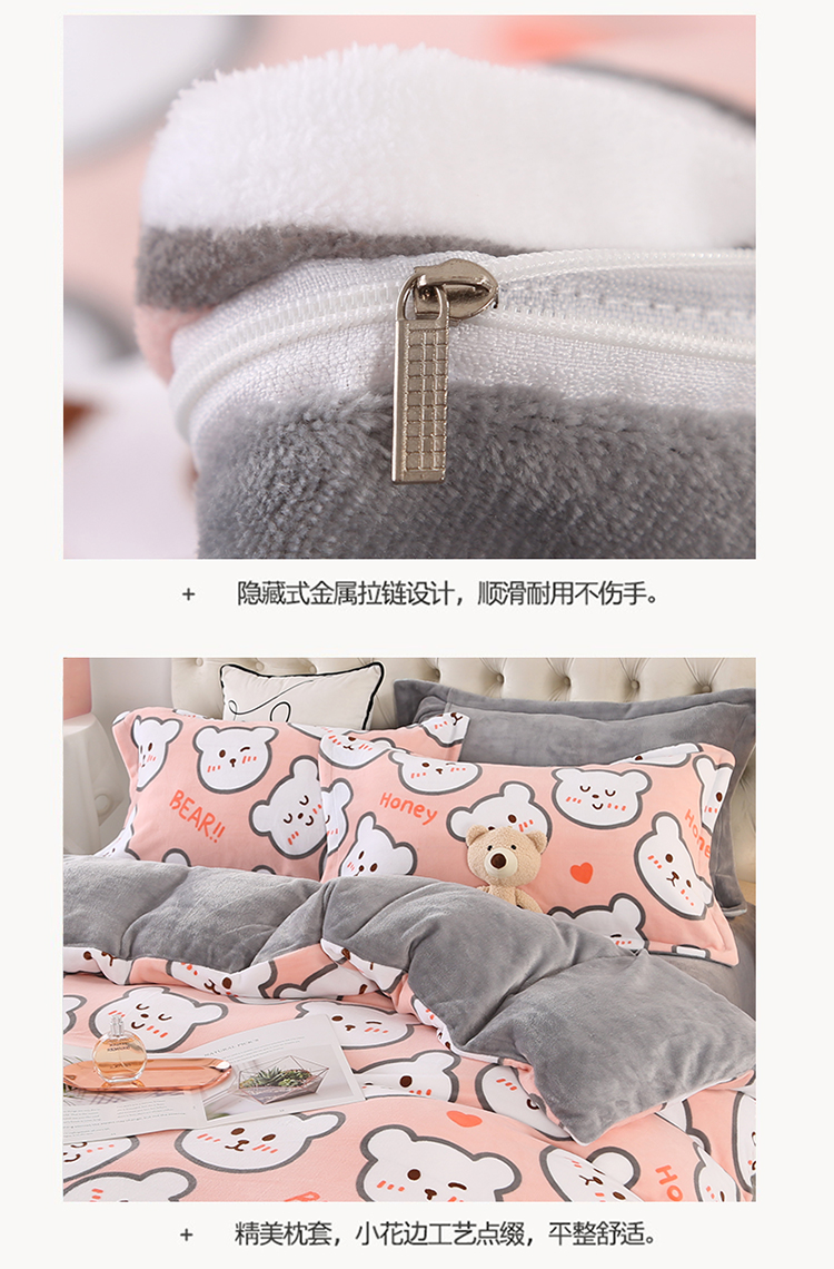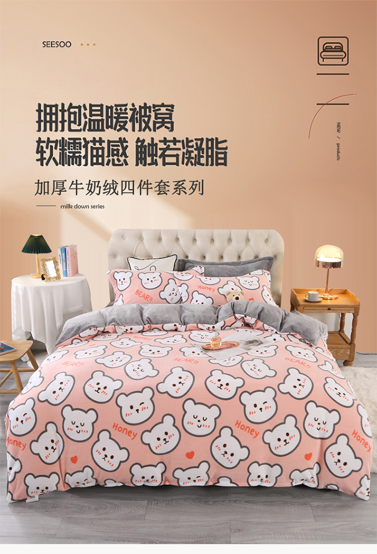 商品名称:爱上家居 2023新款温暖亲肤加厚牛奶绒四件套 可爱熊-粉