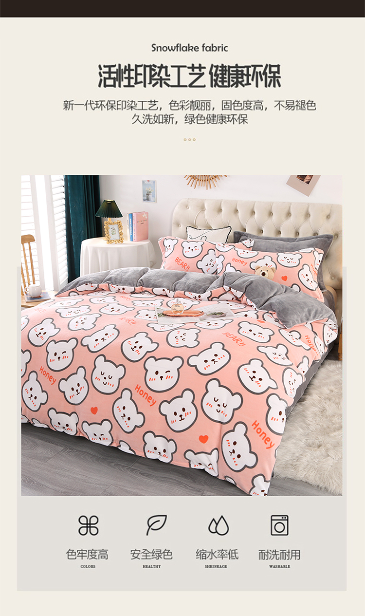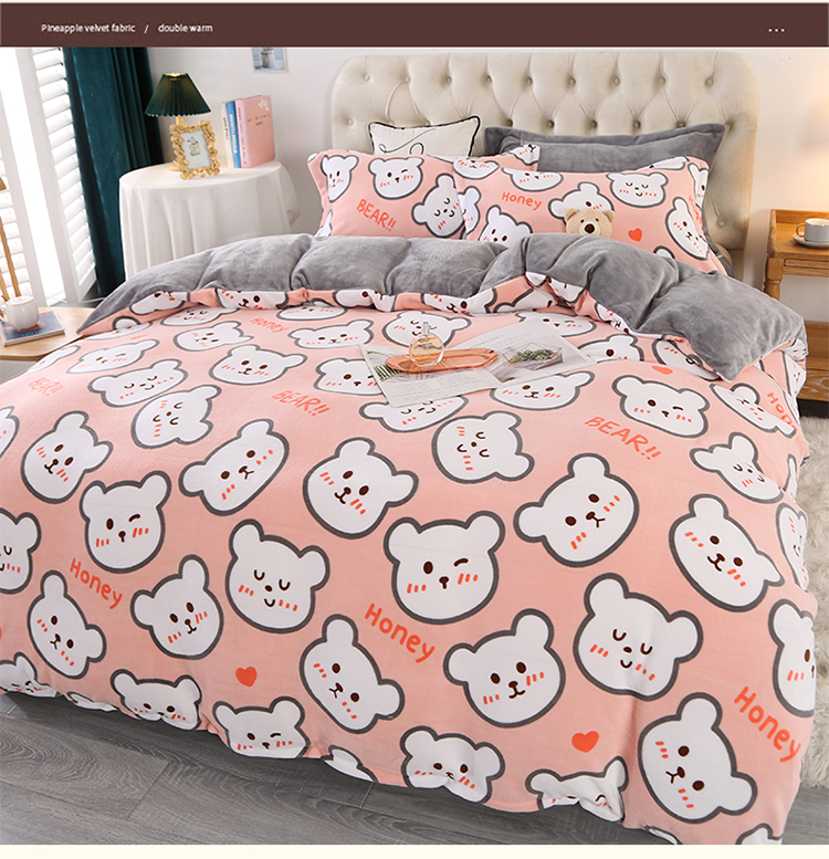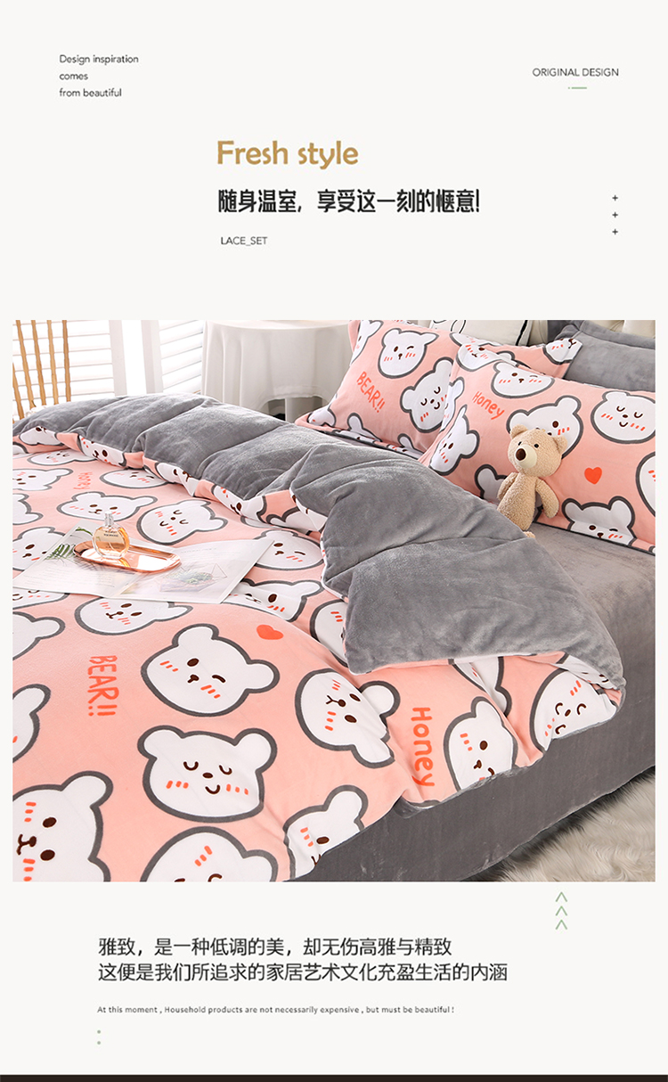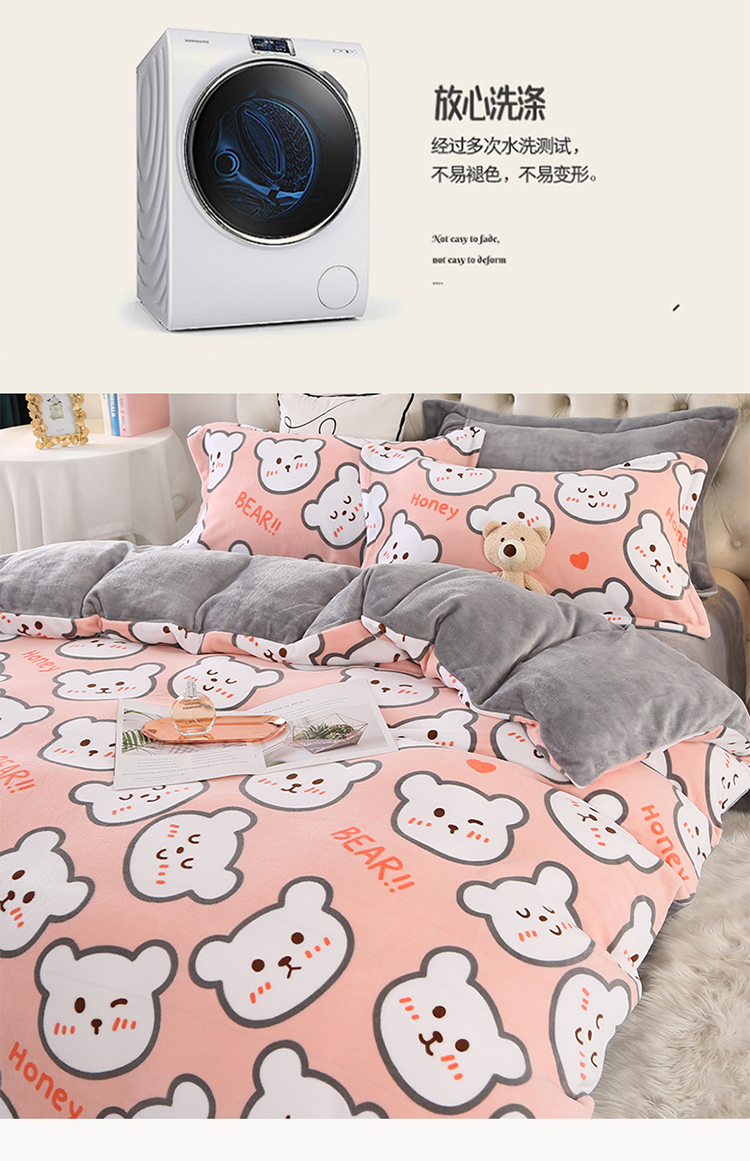 商品名称:爱上家居 2023新款温暖亲肤加厚牛奶绒四件套 可爱熊-粉