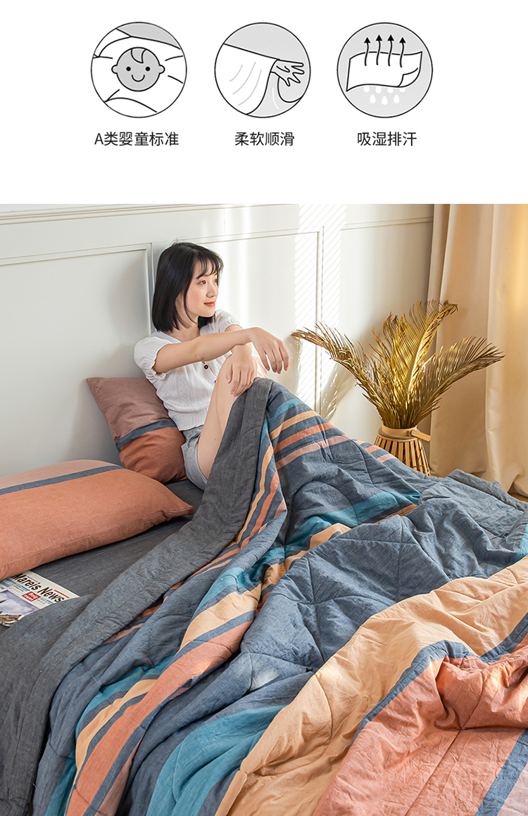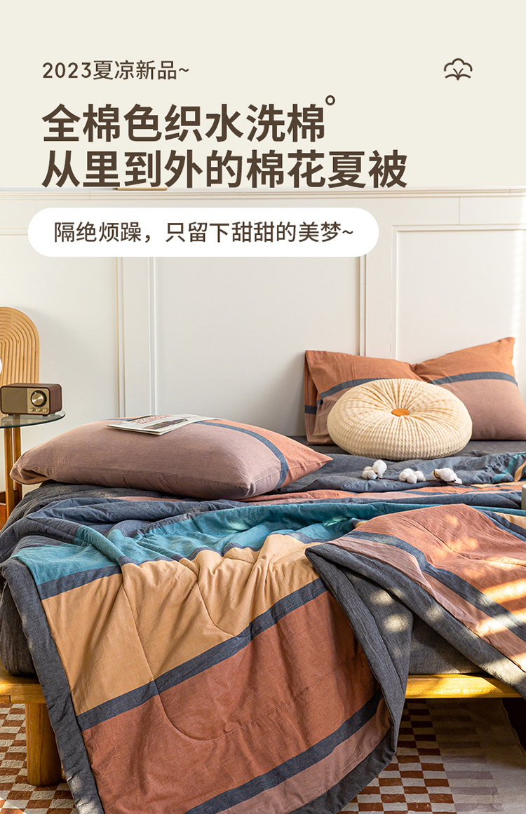 • 91家纺网 家纺一手货源 找家纺 鸣升新疆长绒棉全棉花色织水洗棉夏被四件套 希尔维亚蓝