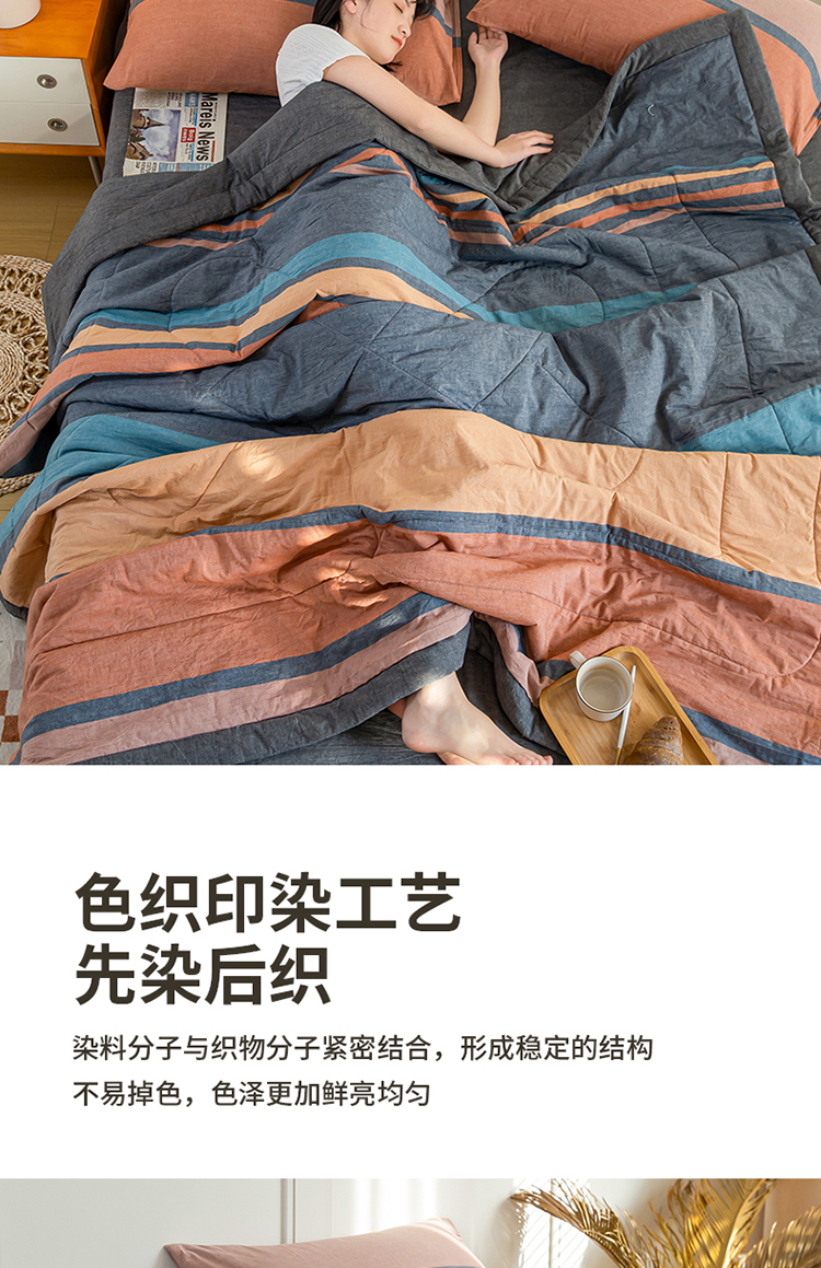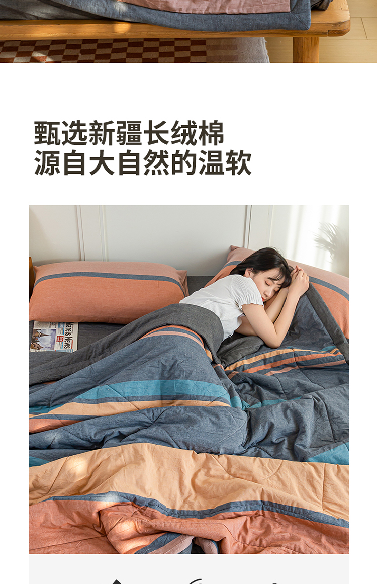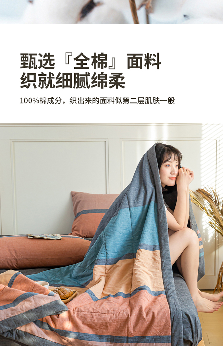 鸣升新疆长绒棉全棉花色织水洗棉夏被四件套 希尔维亚蓝