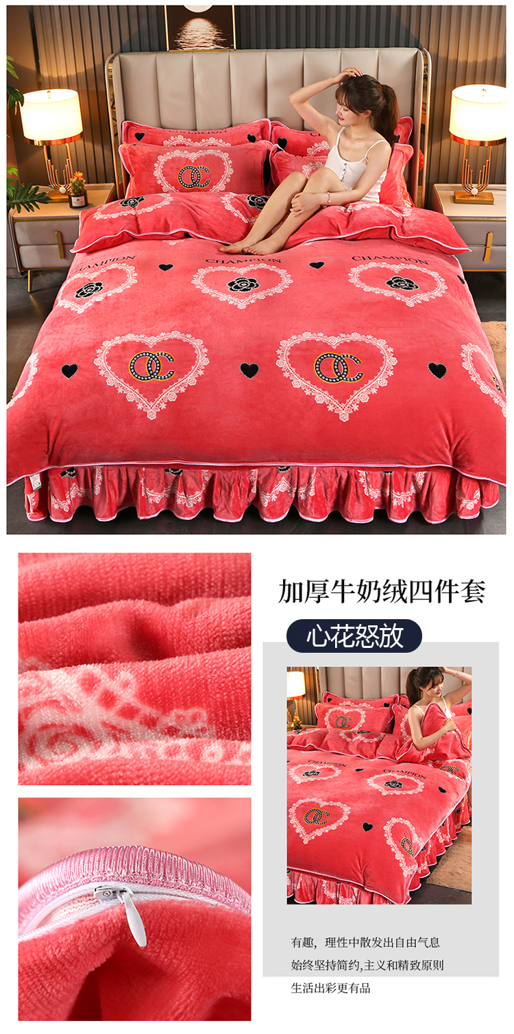 商品名称:爱上家居 2023新款加厚牛奶金貂绒四件套 花心怒放