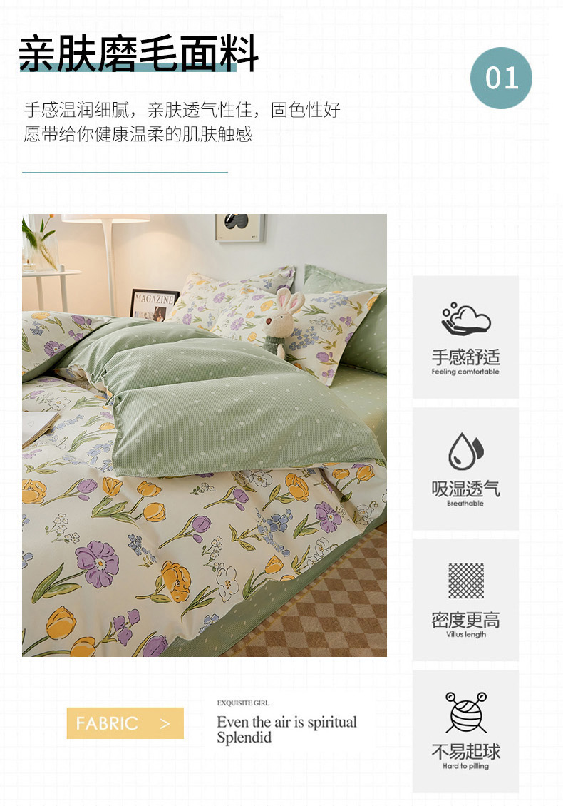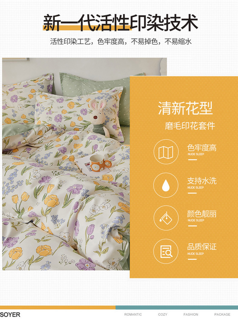 商品名称:世爵 2025新款磨毛印花单被套 朵朵花开
