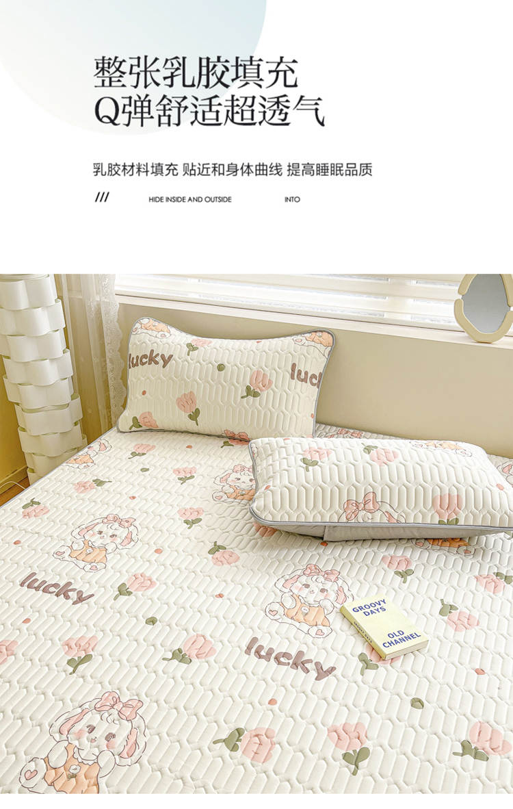 商品名称:柒月2023小清新乳胶凉席 花花萌兔