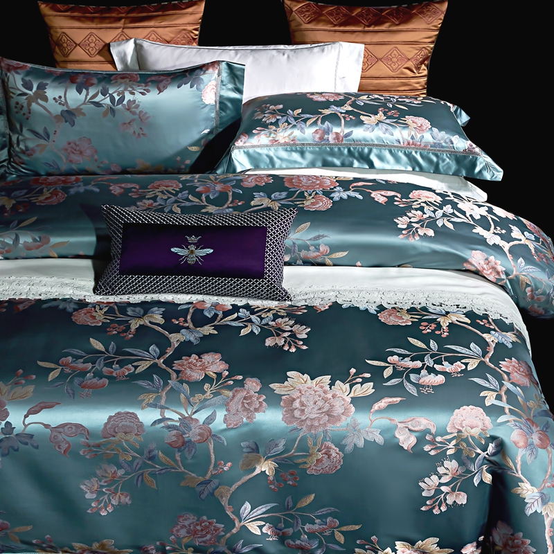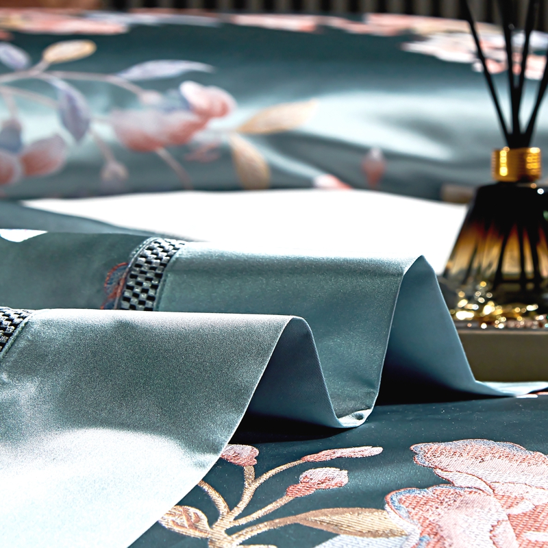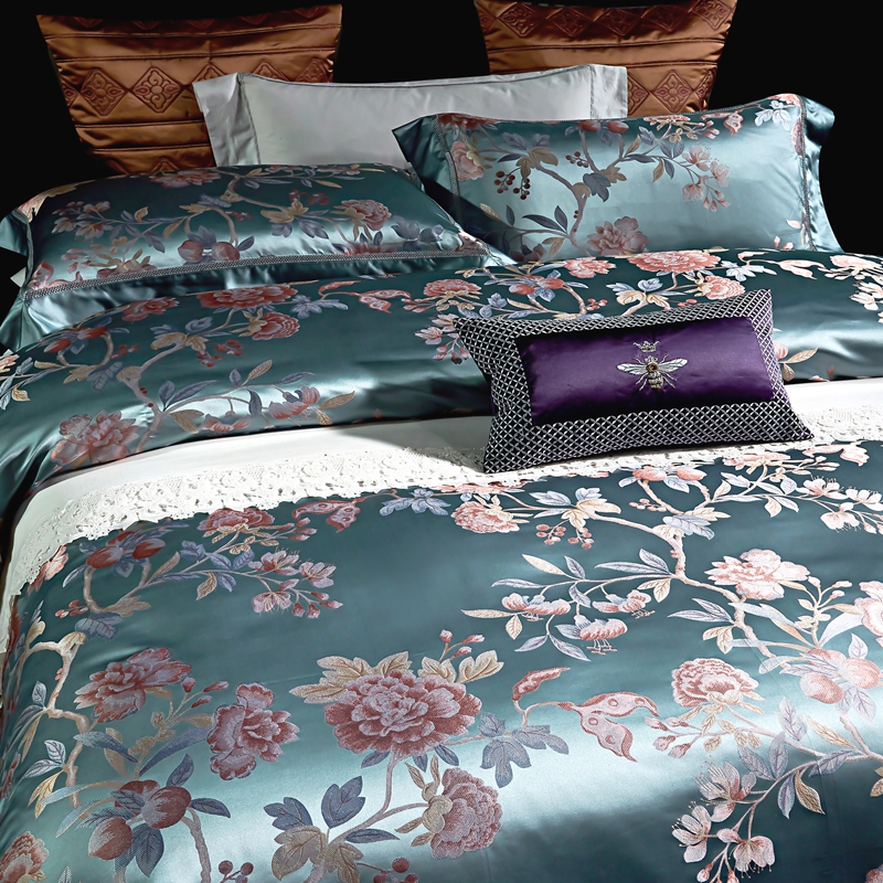 (总)晋瑞红顶鹅绒馆 新款全真丝数码印花四件套,浅若清风