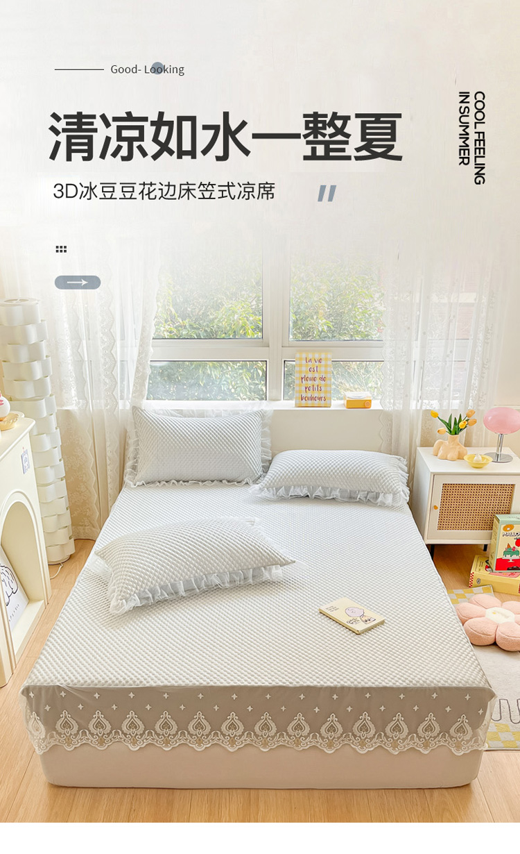 商品名称:恋佳 2025新款豆豆床笠床裙款凉席 豆豆席床笠灰色