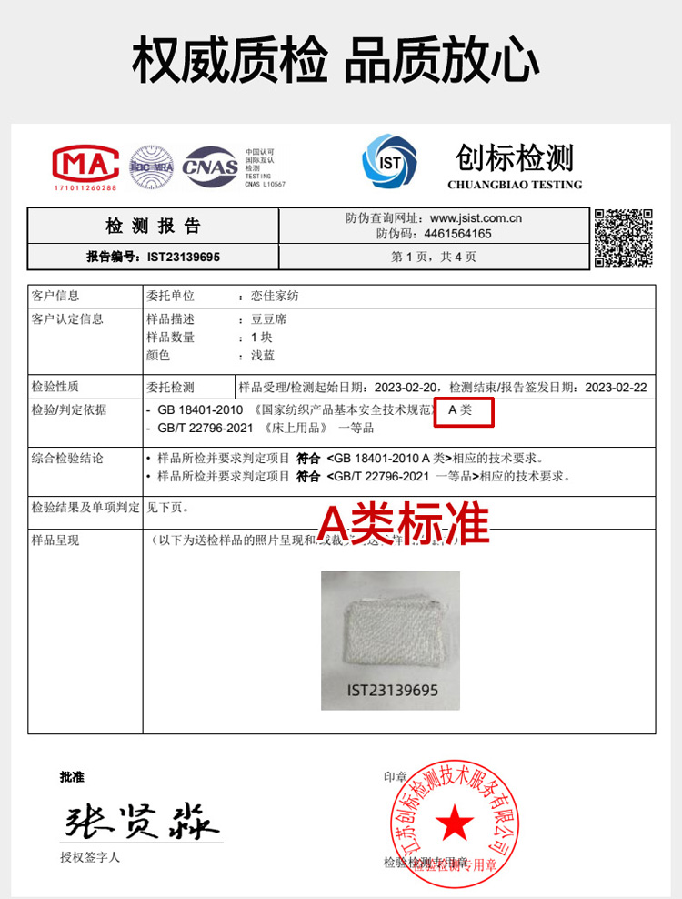4、通州区市场监管局川姜分局友情提醒:近期针对抗静电,无静电,抗菌防螨,及有关舒适度,百分比的举报高发。为不影响商品正常销售,请各商家高度重视,自检自查及时整改,谢谢配合!