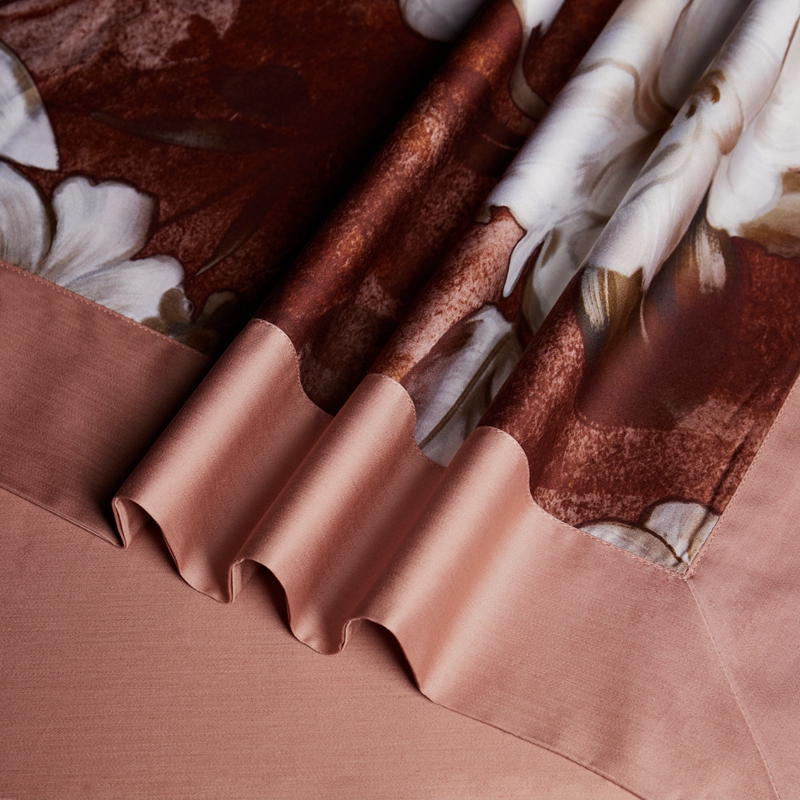 缔缦 2023新款100s长绒棉数码印花拼角款四件套系列-伊鲁特花园 伊鲁特花园 胭脂红
