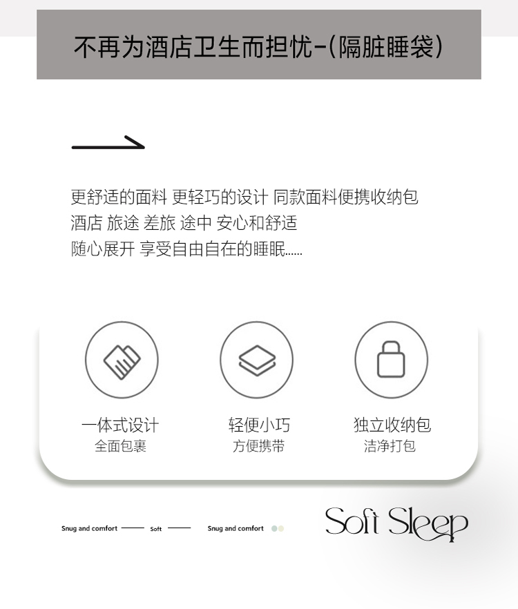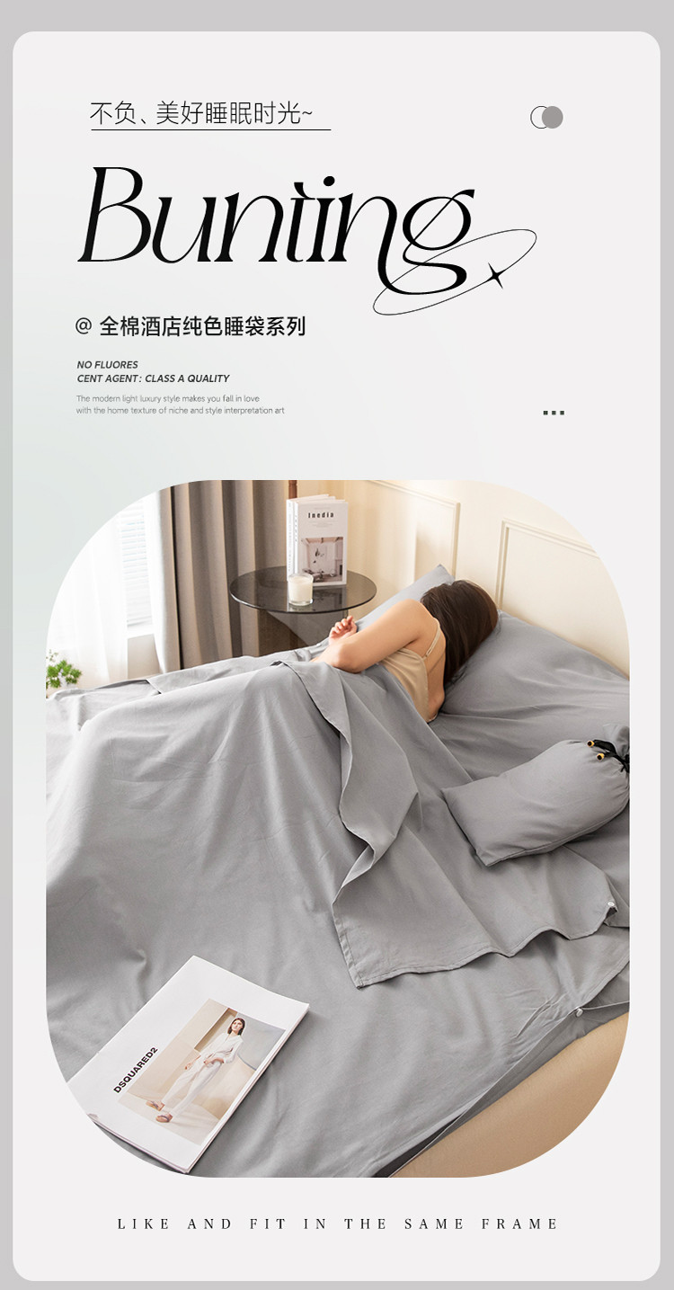 商品名称:莱登卡奴 2023新款全棉纯色酒店睡袋 睡袋-浅灰