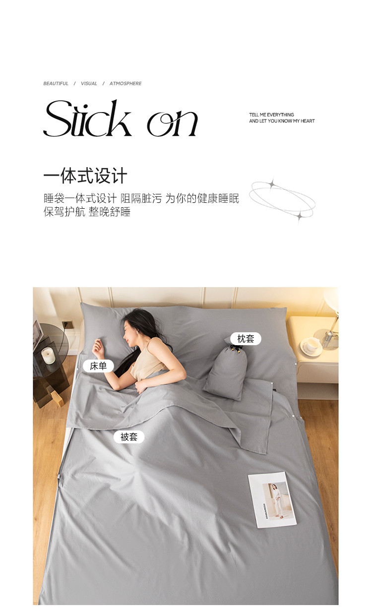 莱登卡奴 2023新款全棉纯色酒店睡袋 睡袋-浅灰
