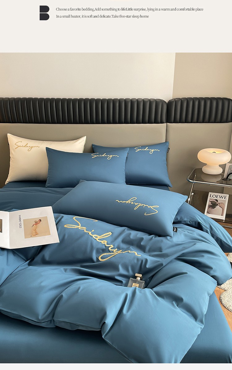 蓝米卡夫 2024全棉高级感长绒棉刺绣-索菲-单被套 索菲-月光蓝调