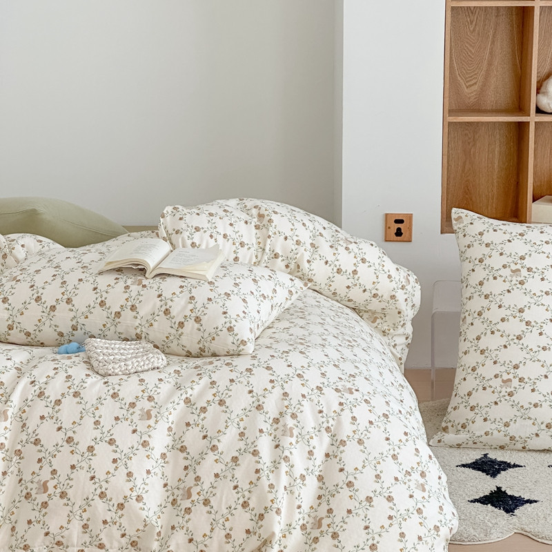 商品名称:黛馨 2025新款A类小清新双层纱四件套(实拍)小松鼠