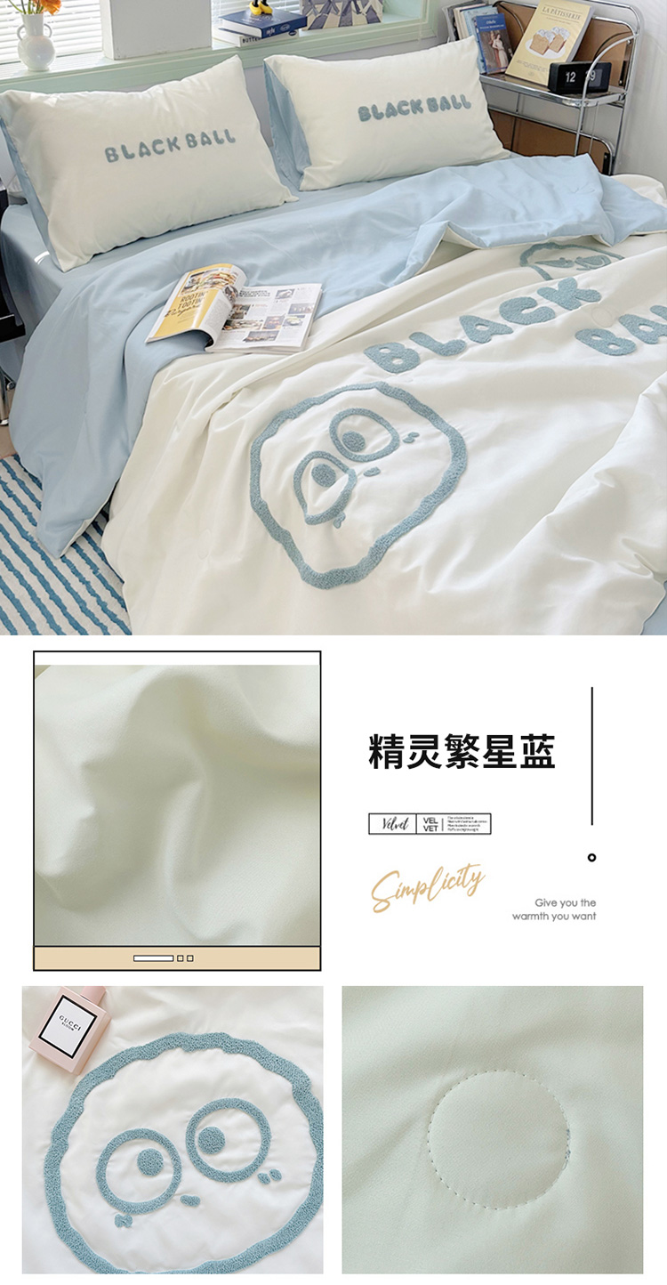 当前位置: 91家纺网 > 商品网购 > 床品套件 > 四件套 > 水洗棉四件套 > 眠帛 2024新款A类水洗棉毛巾绣夏被四件套—精灵系列 精灵繁星蓝