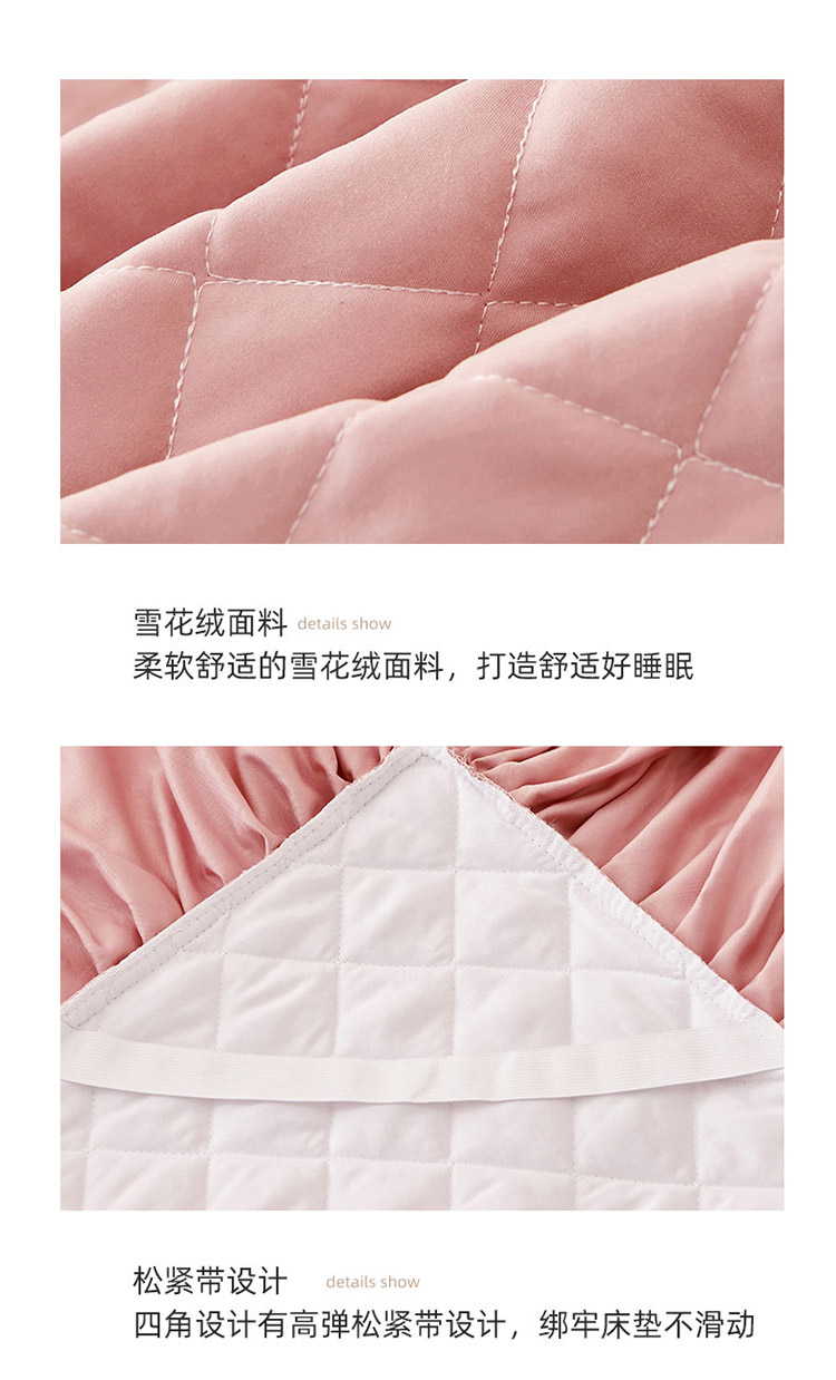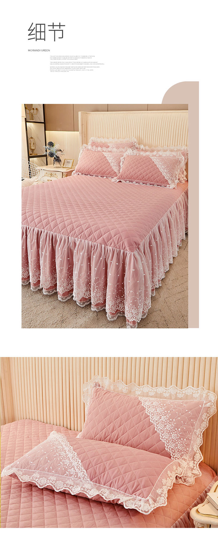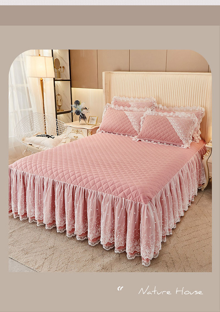 • 91家纺网 家纺一手货源 找家纺 恋尚 2023新款纯色雪花绒夹棉蕾丝床裙三件套(四季款) 玫瑰公主-玉色