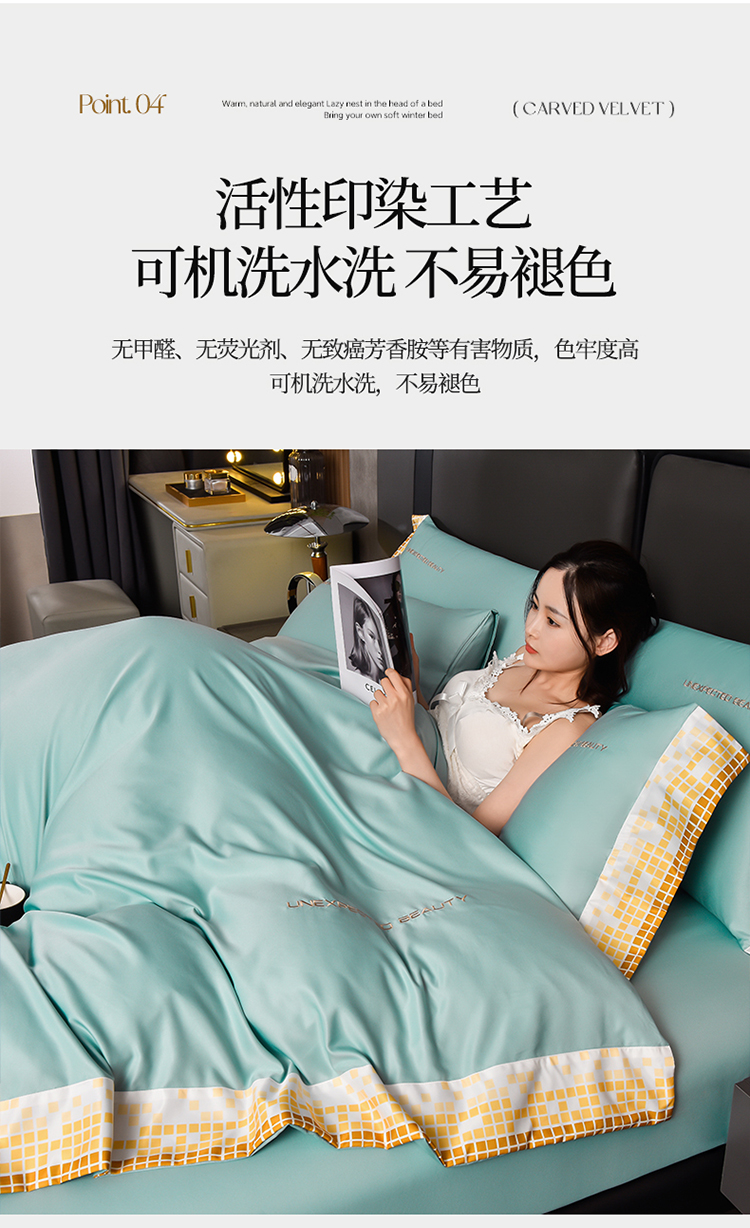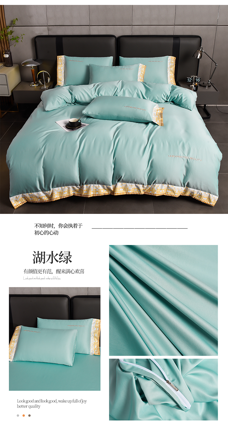 商品名称:米奈 2024新款A类水洗真丝四件套-星光 湖水绿