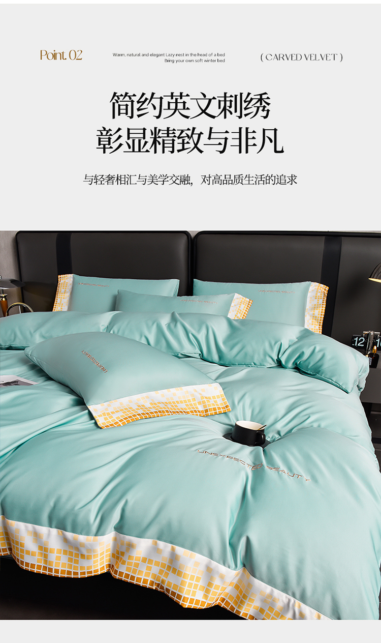 米奈 2024新款A类水洗真丝四件套-星光 湖水绿