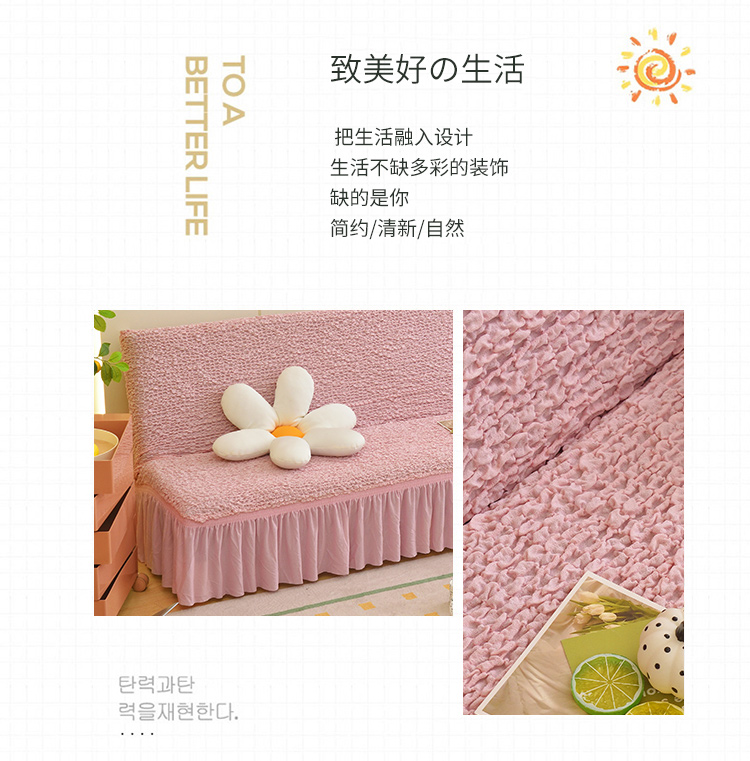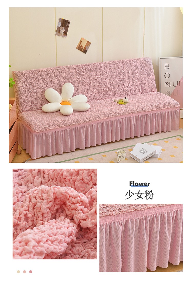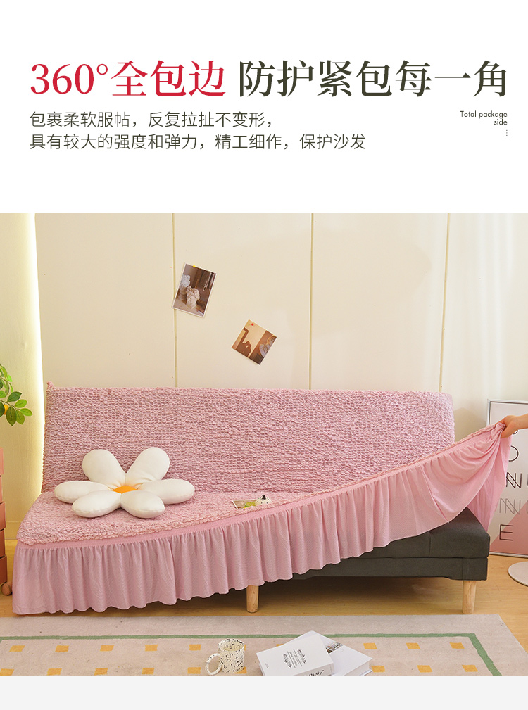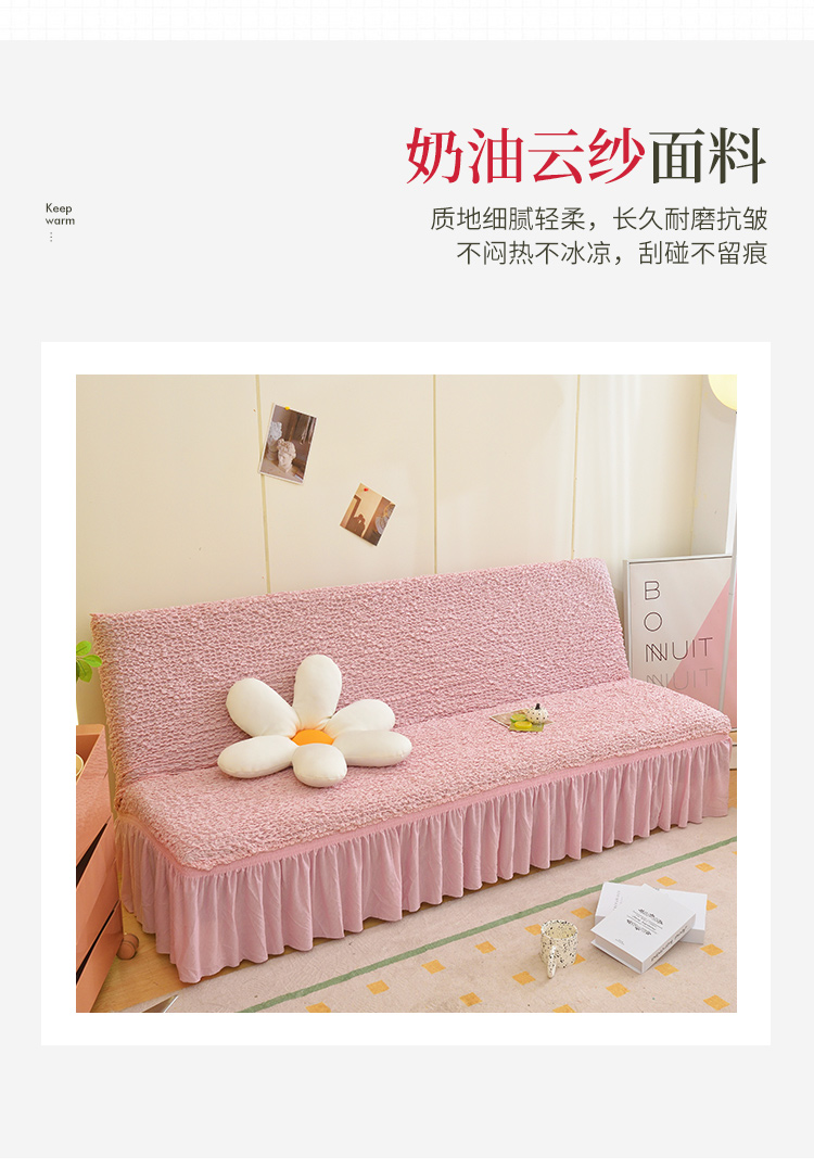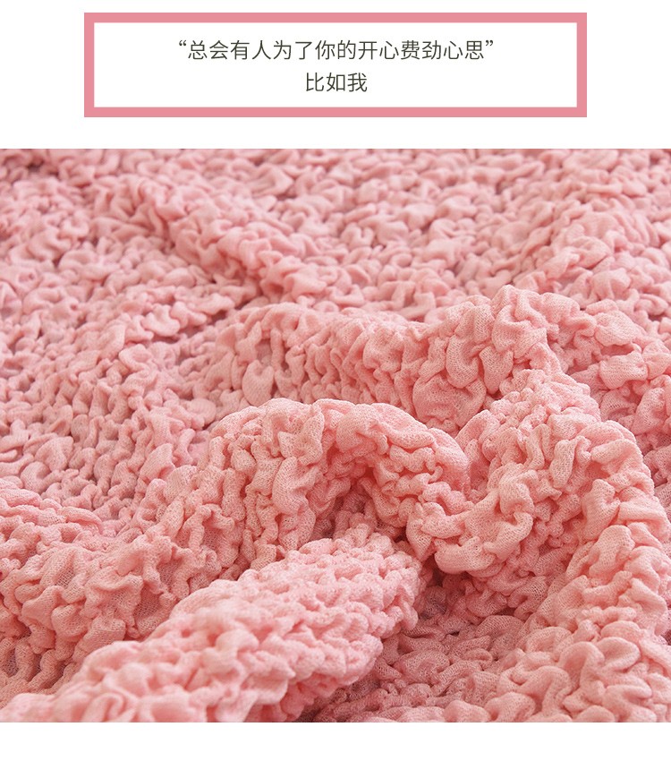 商品名称:启博家纺 2023新款高端日式皱皱布奶油云纱裙边沙发床套 少女粉