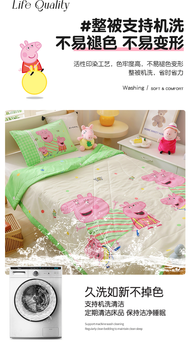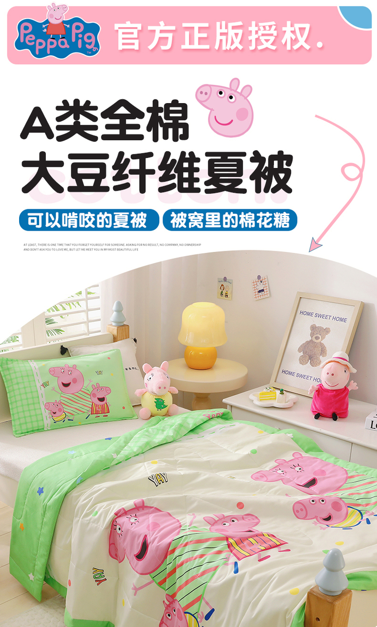 商品名称:鱼宝 2023新款小猪佩奇授权全棉夏被 小猪佩奇绿