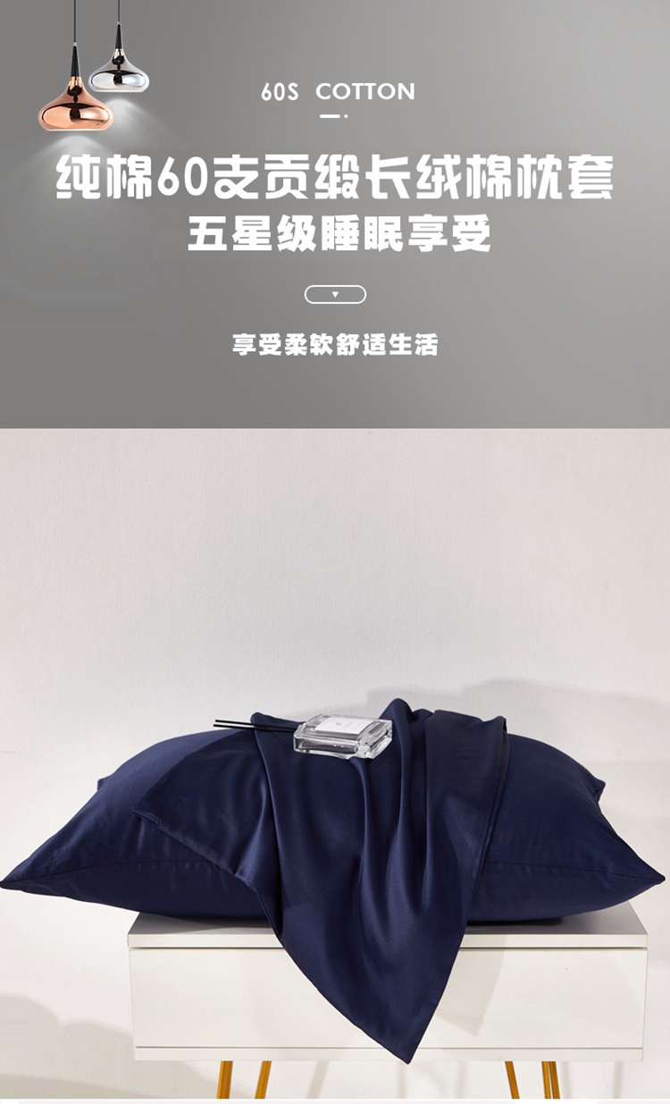 商品名称:晶缦 2023全棉纯棉60支贡缎长绒棉纯色多规格单品枕套 琅夕-丈青色29