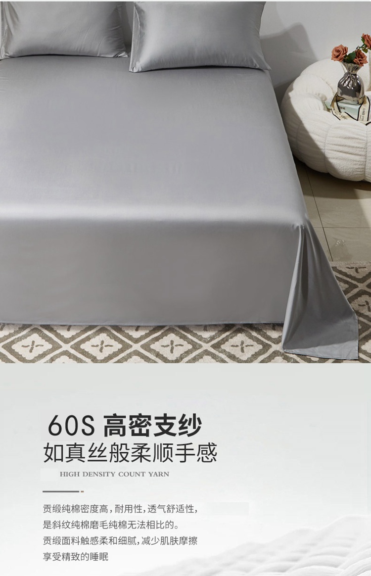 商品名称:晶缦 2023新款全棉纯棉60支贡缎长绒棉纯色多规格单品床单 琅夕-奥丁灰