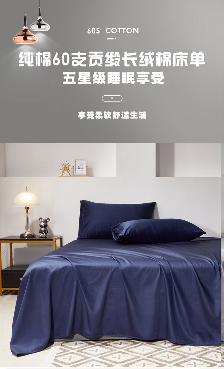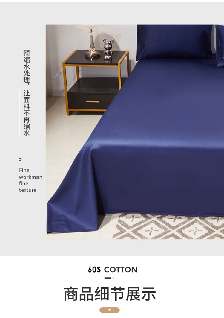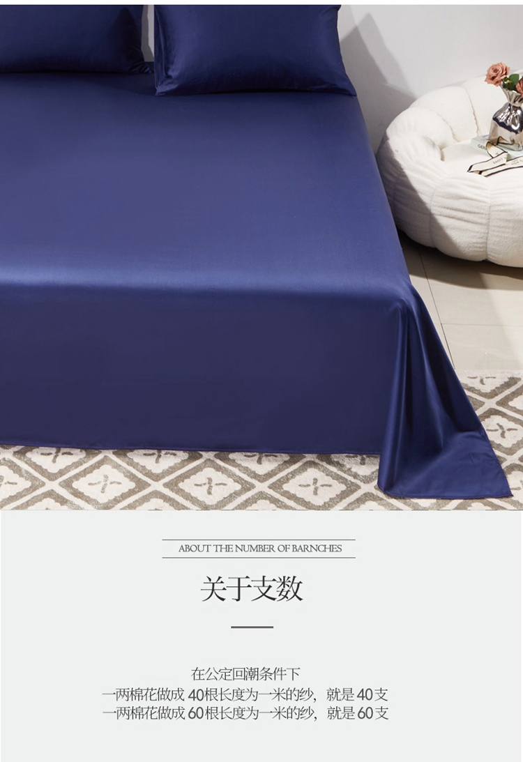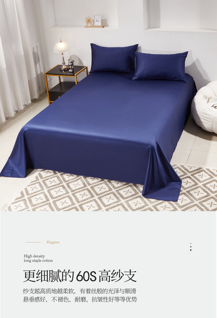 商品名称:晶缦 2023新款全棉纯棉60支贡缎长绒棉纯色多规格单品床单 琅夕-丈青色