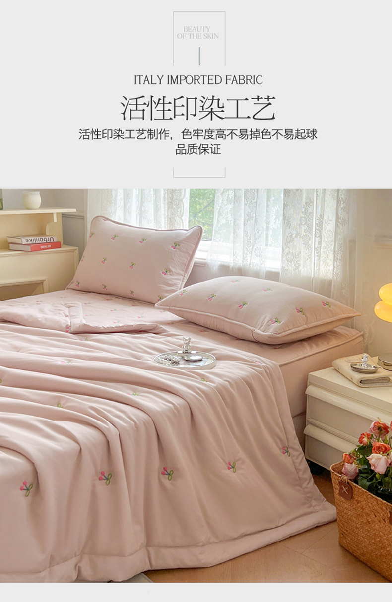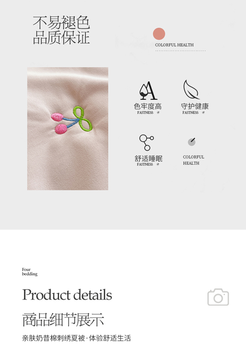 尊康家纺(原磊科) 2024新款亲肤奶昔棉刺绣夏被 夏被-米咖