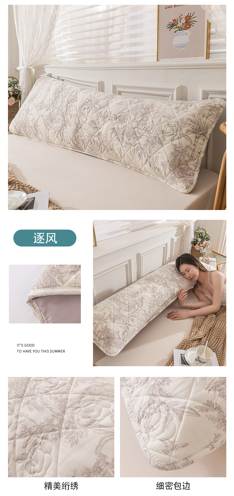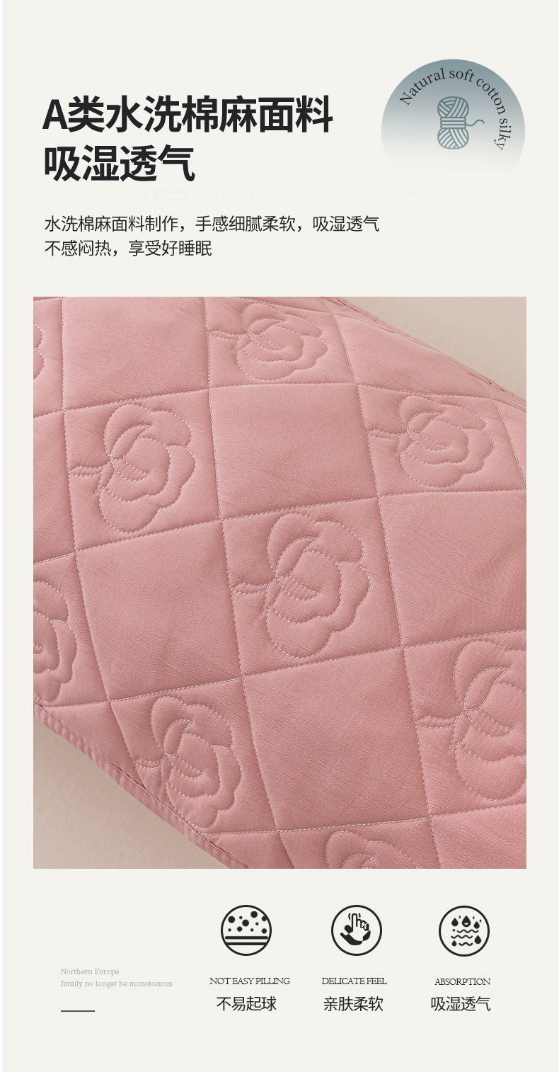 48*120【A类水洗棉麻夹棉枕套】