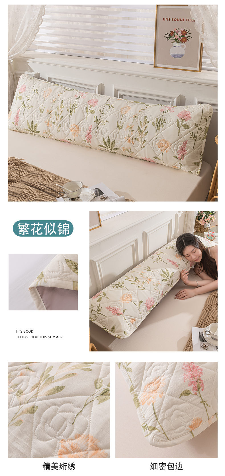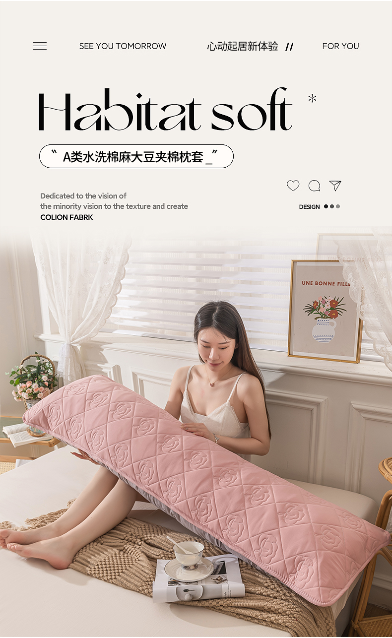 48*180【A类水洗棉麻夹棉枕套】