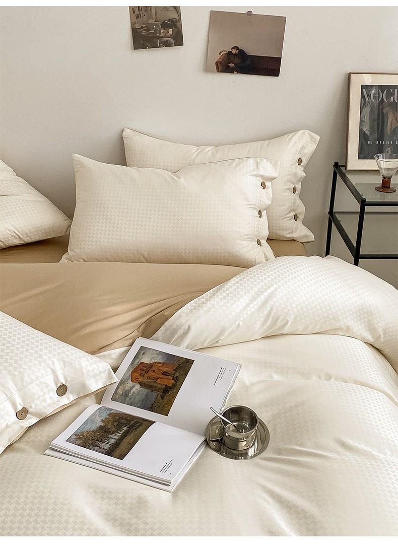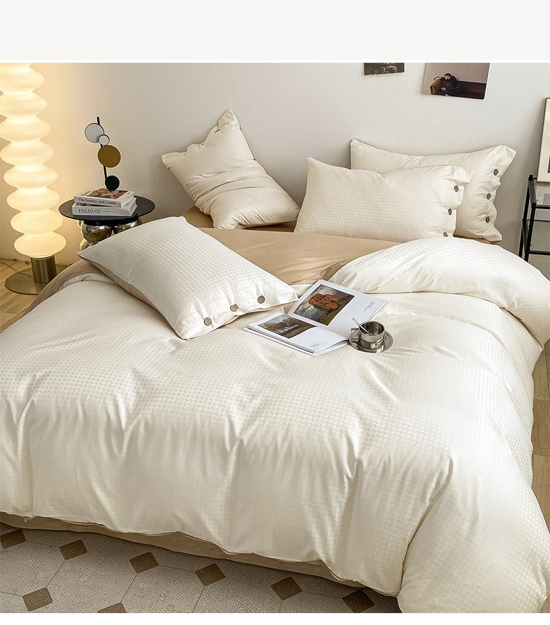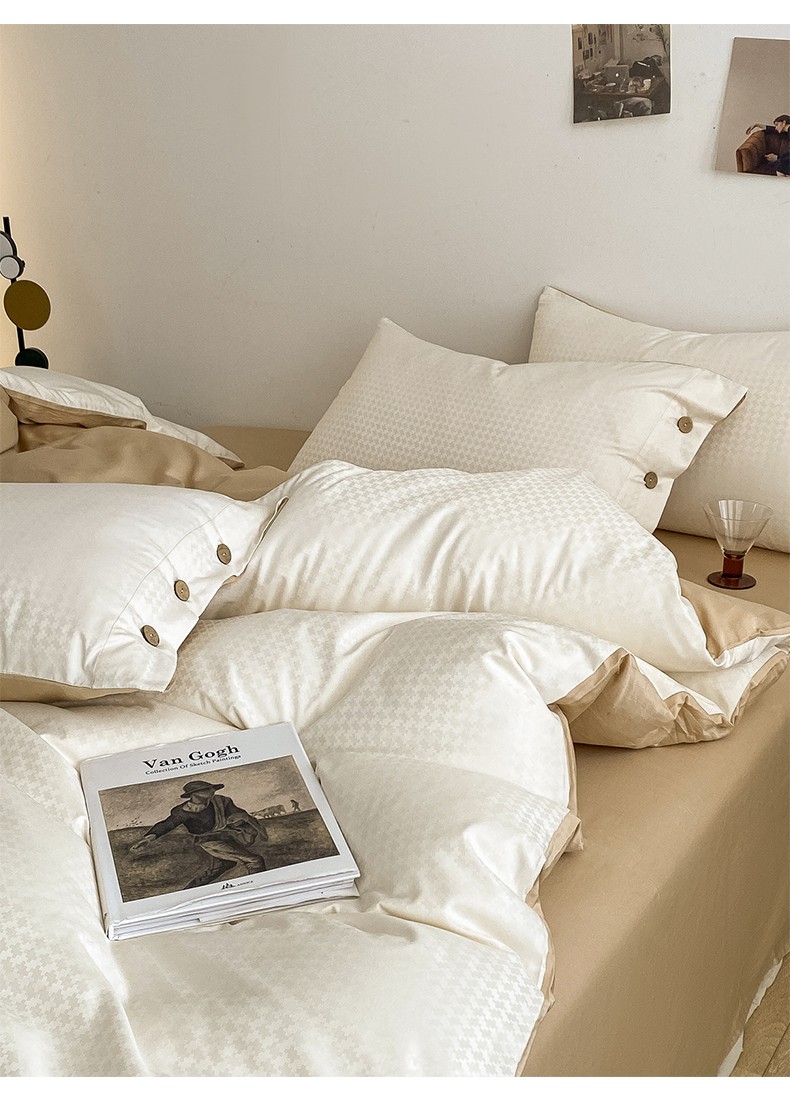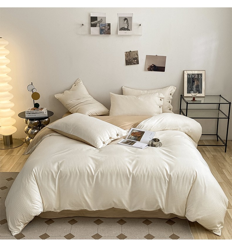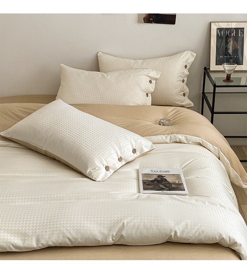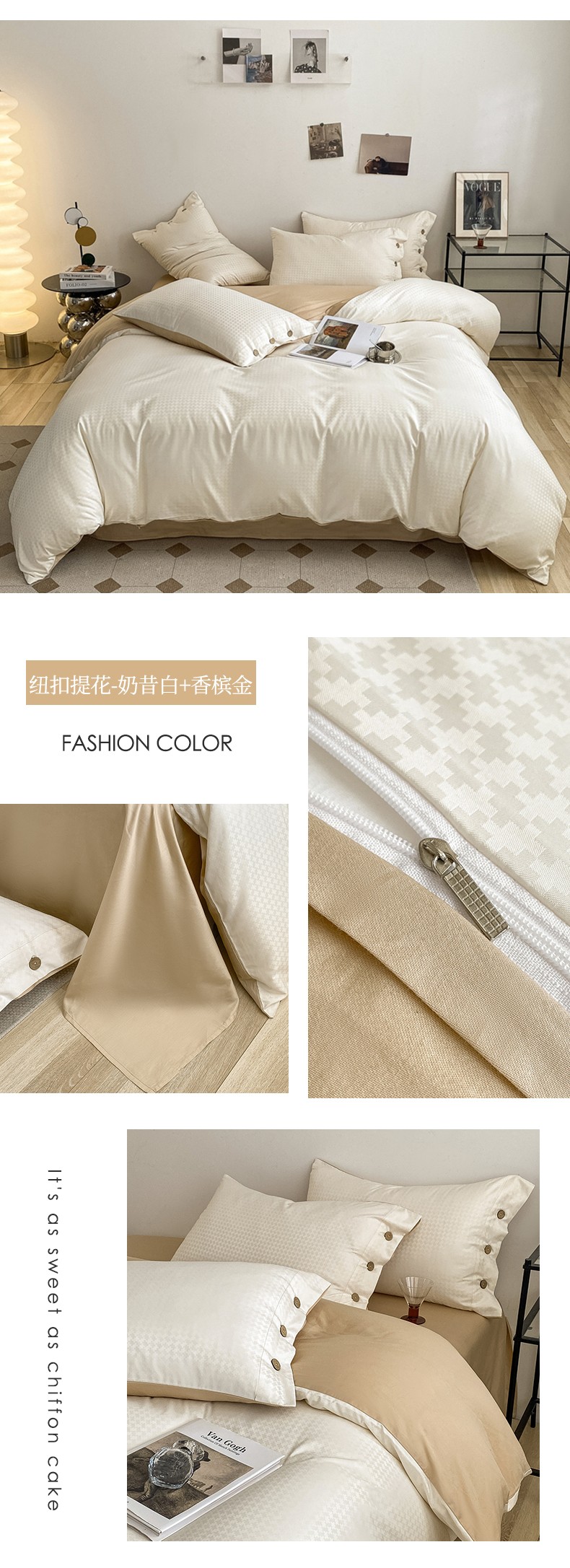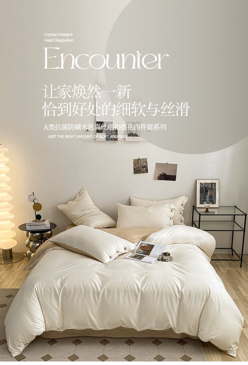 当前位置: 91家纺网 > 商品网购 > 床品套件 > 四件套 > 提花四件套 > 古吉梦 2023新款A类抗菌防螨水洗真丝纽扣提花四件套 纽扣提花-奶昔白+香槟金