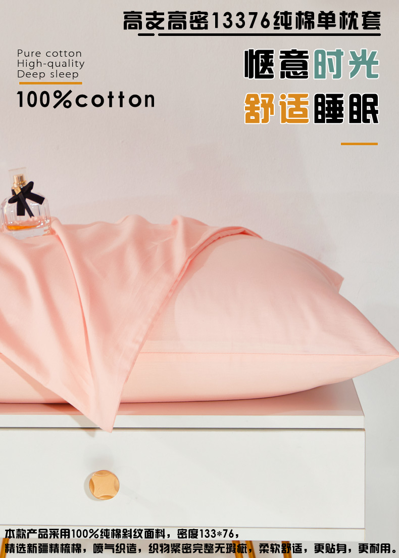 商品名称:晶缦家纺 2023新款喷气全棉13376纯棉斜纹纯色单品枕套 沐色-粉玉