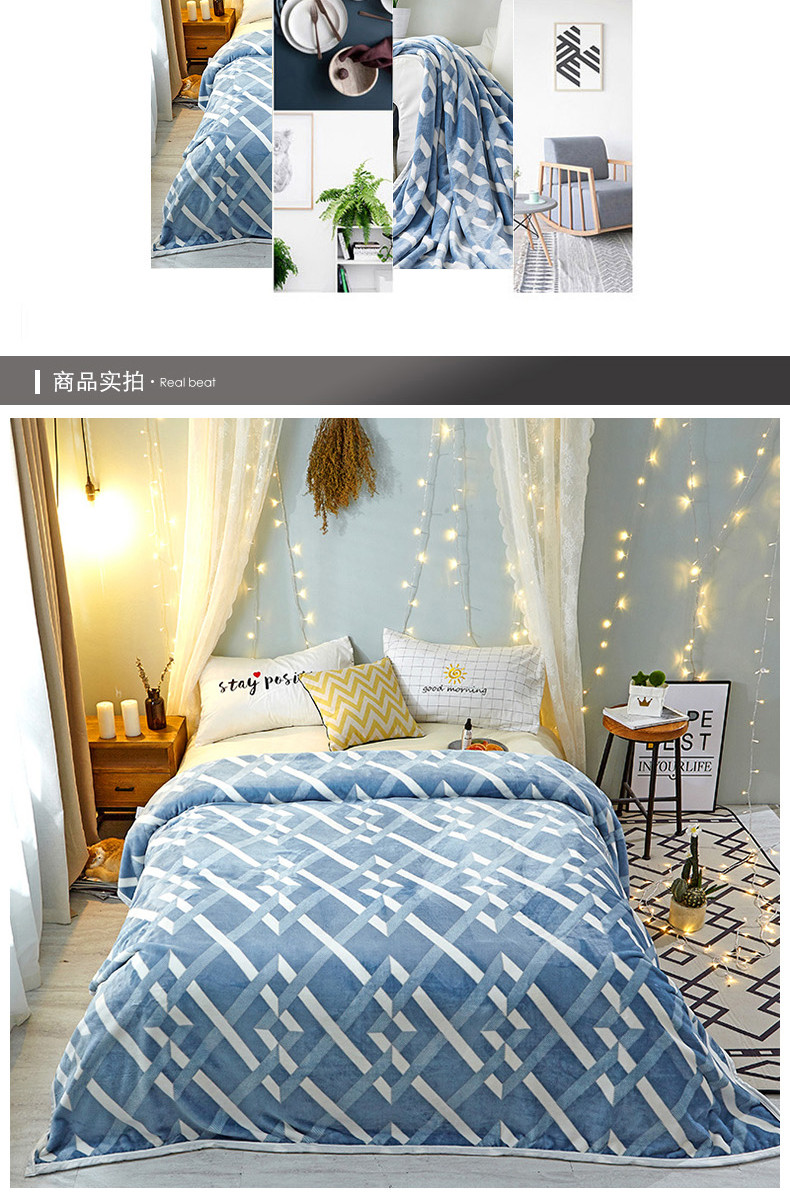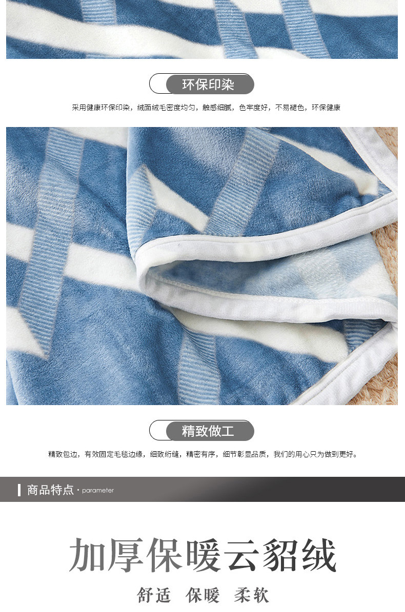 肖恩毯业 2025新款印花云貂绒毛毯沙发盖毯午睡毯子 蓝调