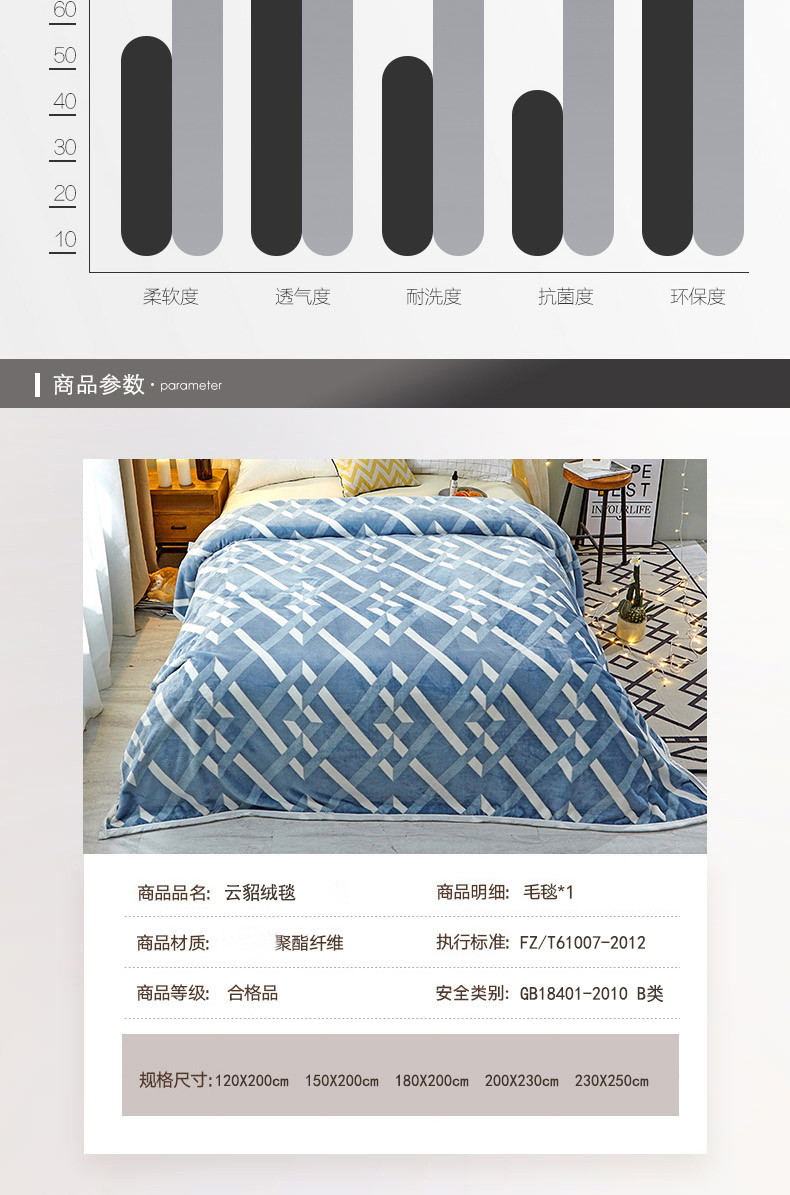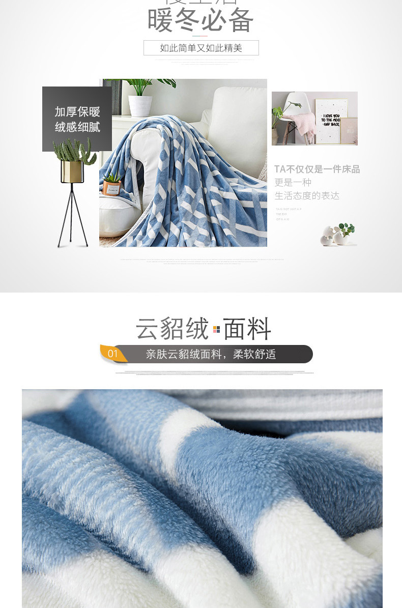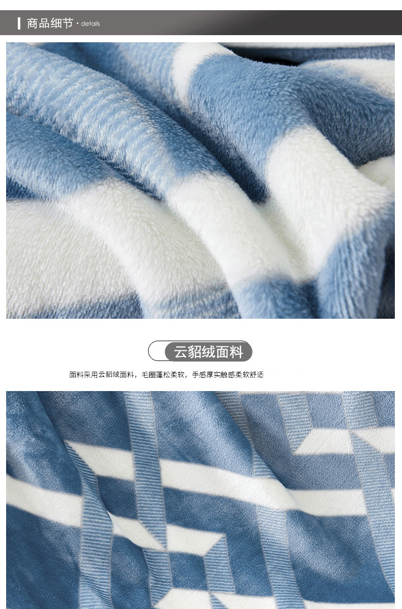 商品名称:肖恩毯业 2025新款印花云貂绒毛毯沙发盖毯午睡毯子 蓝调