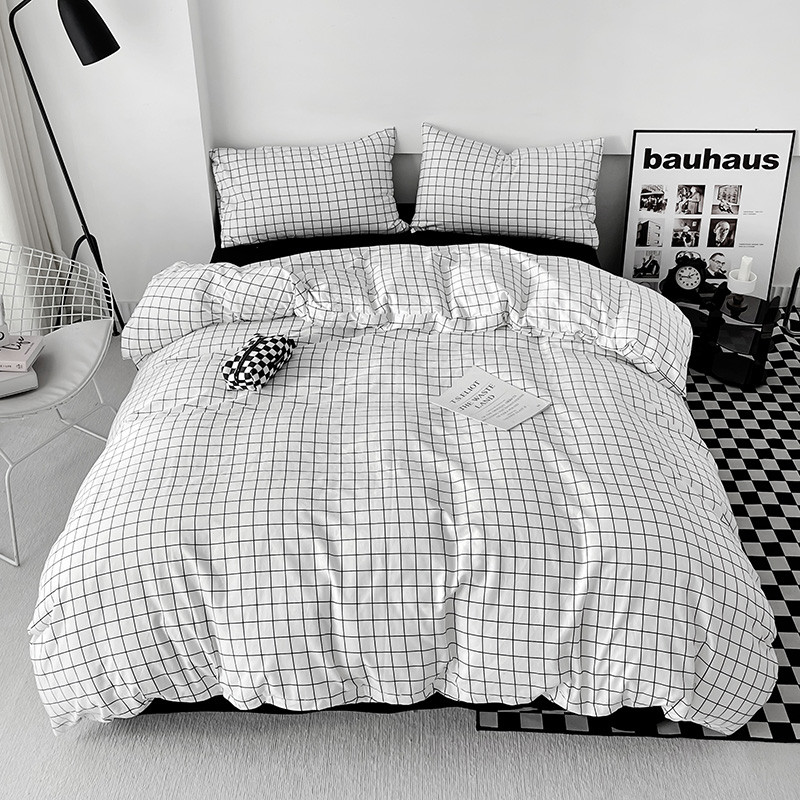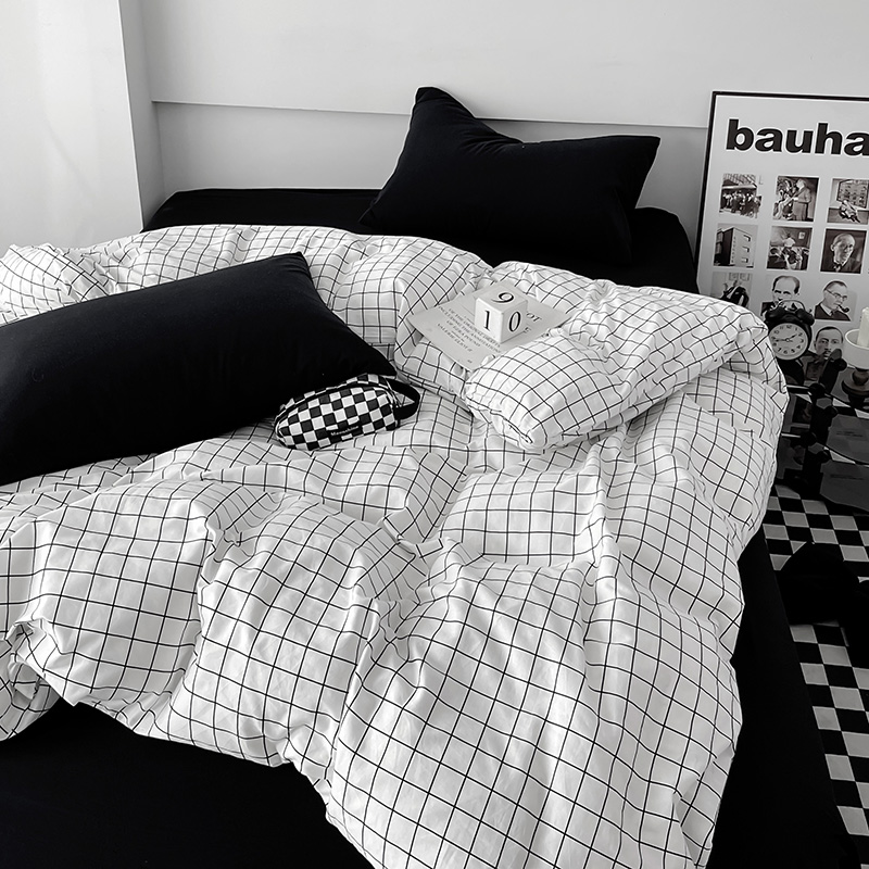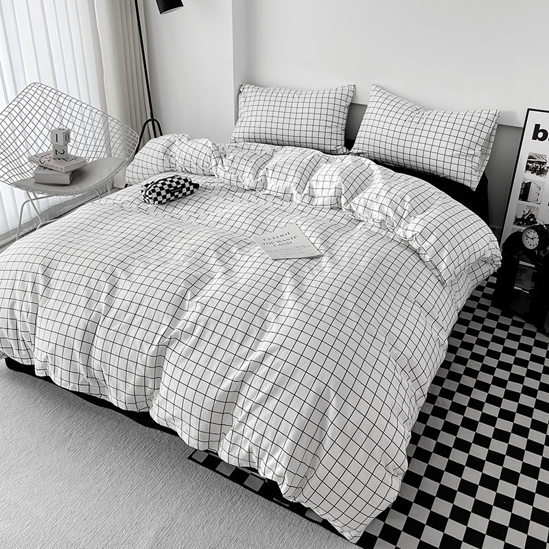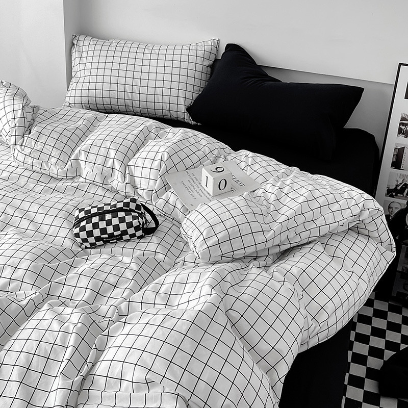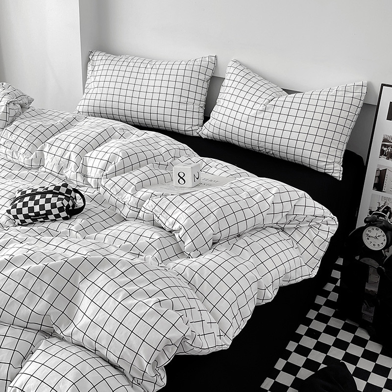 梦家居 2023新款简约北欧全棉水洗棉混搭四件套 小白格