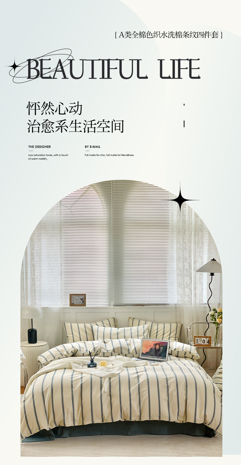 (总)莱茵家居 2025新款全棉纯棉皱皱纱条纹四件套-杼影,杼影-咖纸蓝,杼影-冷雾蓝,杼影-麦浪紫,杼影-绵云咖,杼影-奶泡粉,杼影-暖果黄,杼影-午茶绿,杼影-雨巷灰