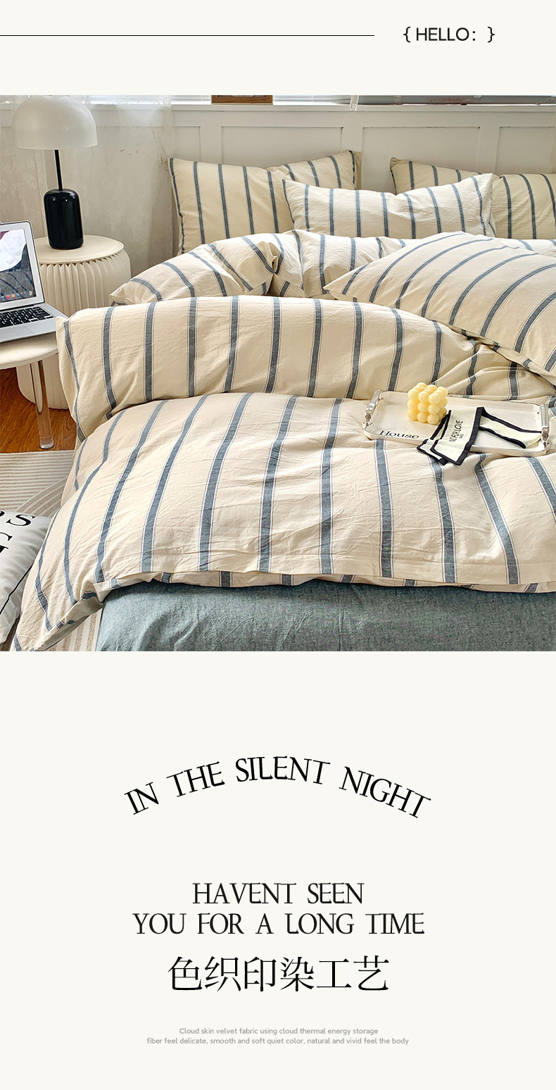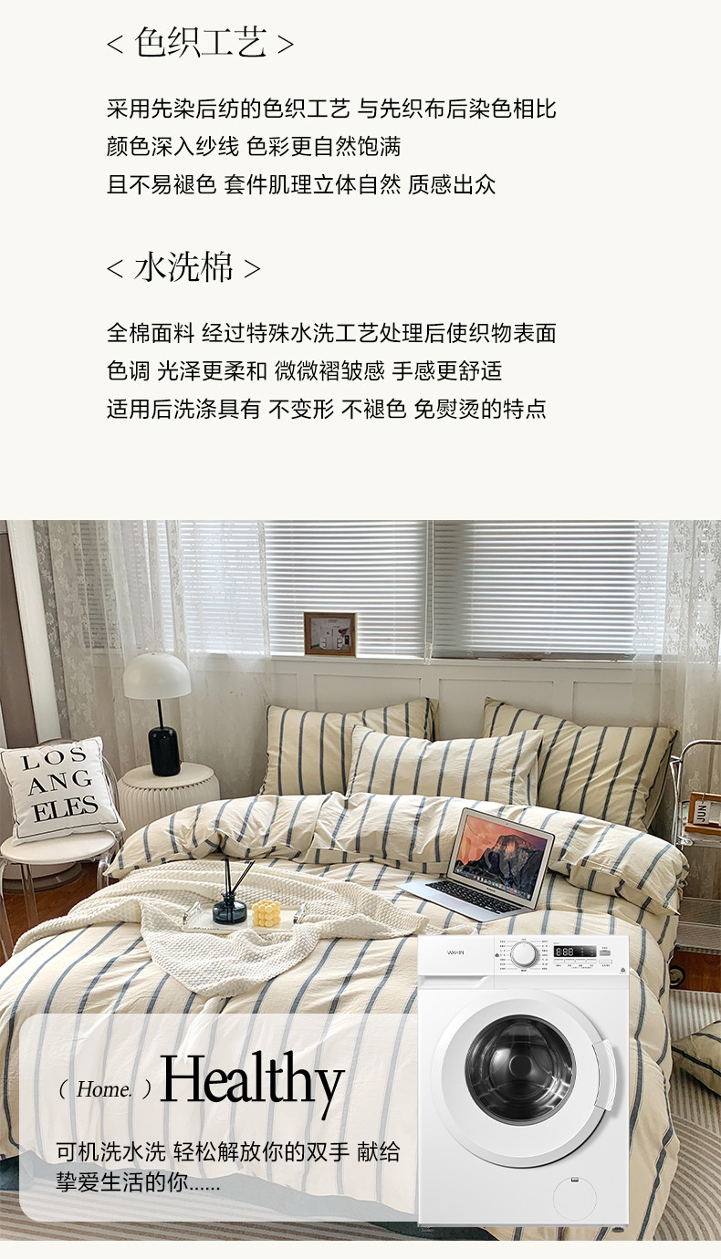 商品名称:莱茵家居 2024新款色织水洗棉小小系列四件套 天小蓝
