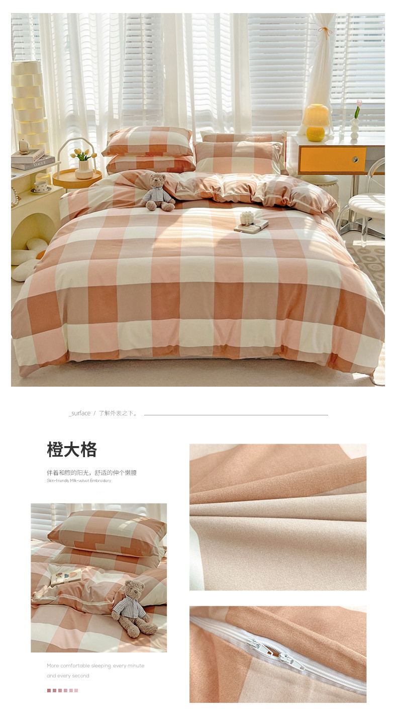 当前位置: 91家纺网 > 商品网购 > 床品套件 > 四件套 > 全棉普通四件套 > 邵依 2025新款格子纯色素色双拼水洗棉非全棉纯棉四件套 橙大格